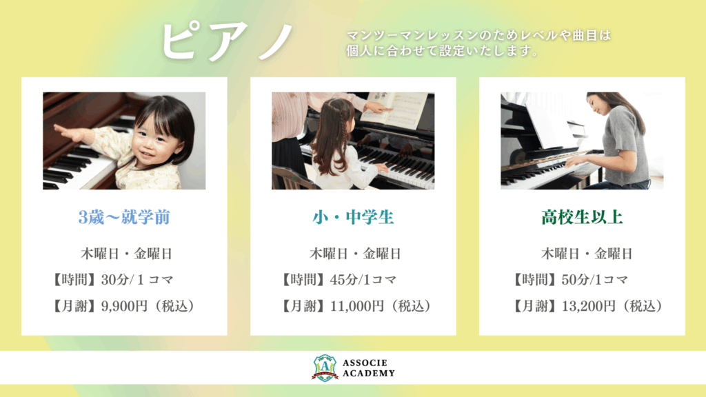 ※ピアノクラスは満席のため、新規募集は行っておりません。