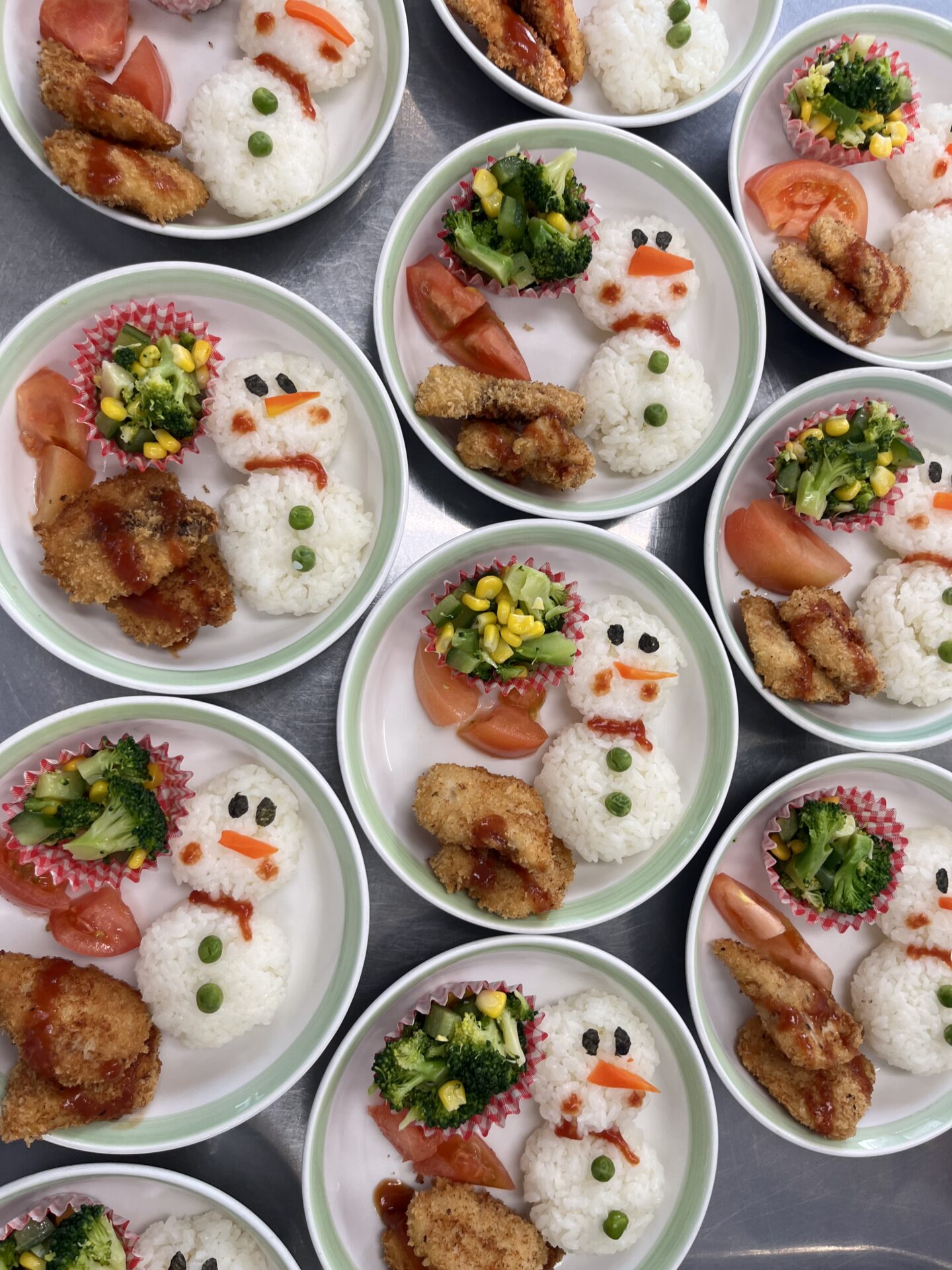 雪だるまの鼻は人参ですが、切り方に悩み・・・💦工夫して切りました。