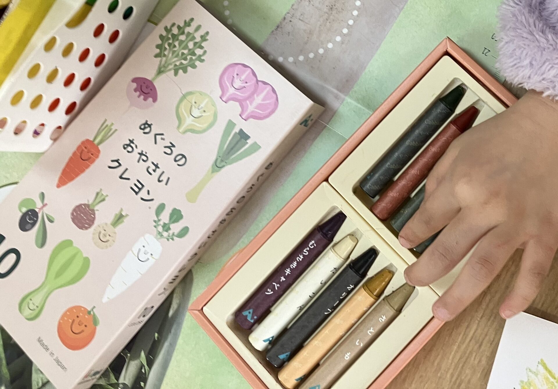 本物の野菜から作られた「めぐろのおやさいクレヨン」を使用しました。