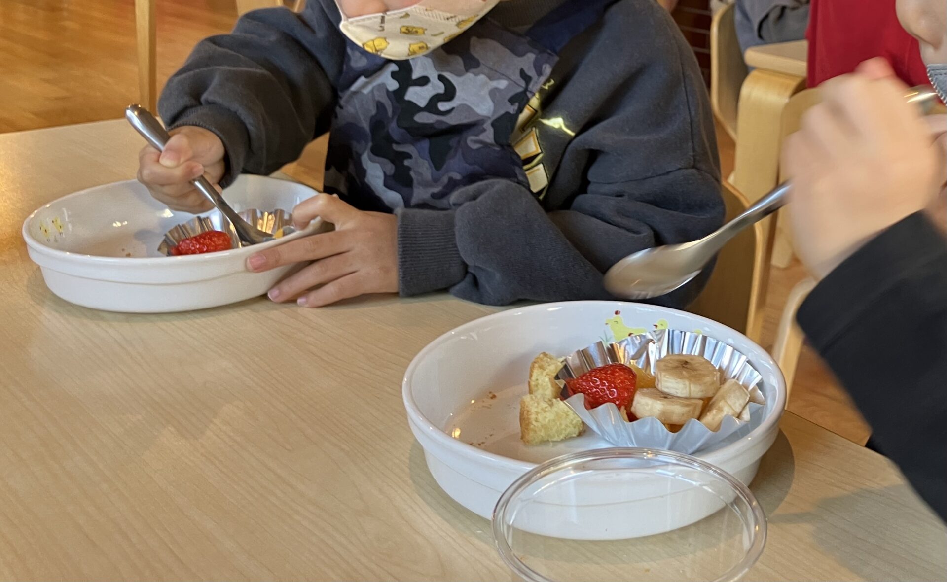 「いちごがある!」「バナナもあるよ!」ととっても楽しみにしていてくれました♪