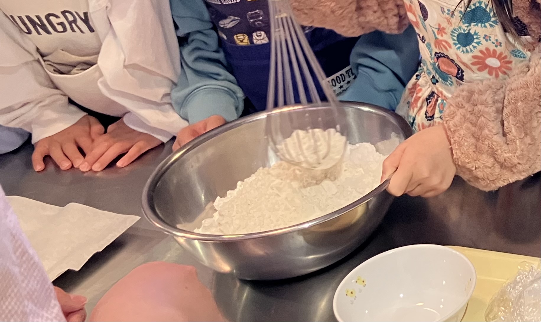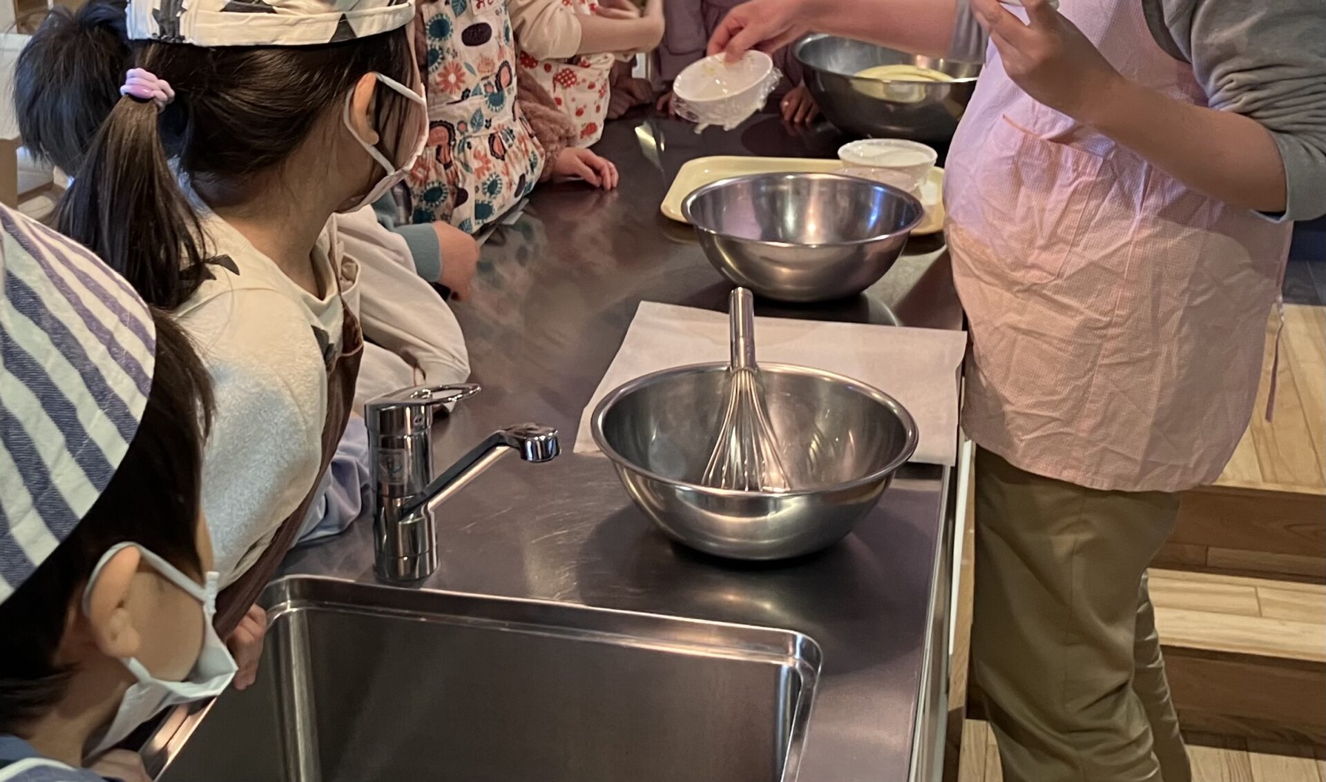 らいおん組さんはパフェに入れるスポンジケーキとホイップクリームを作ってもらいました!