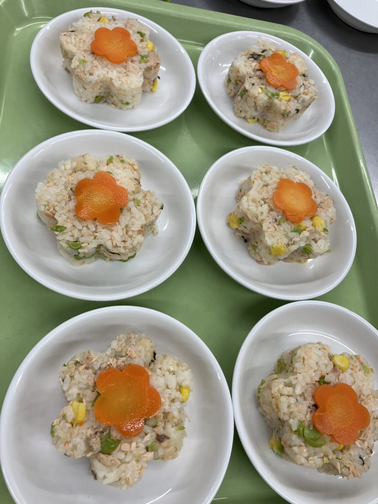 ちらし寿司はご飯とにんじんを花形にして、可愛く盛り付けました♪