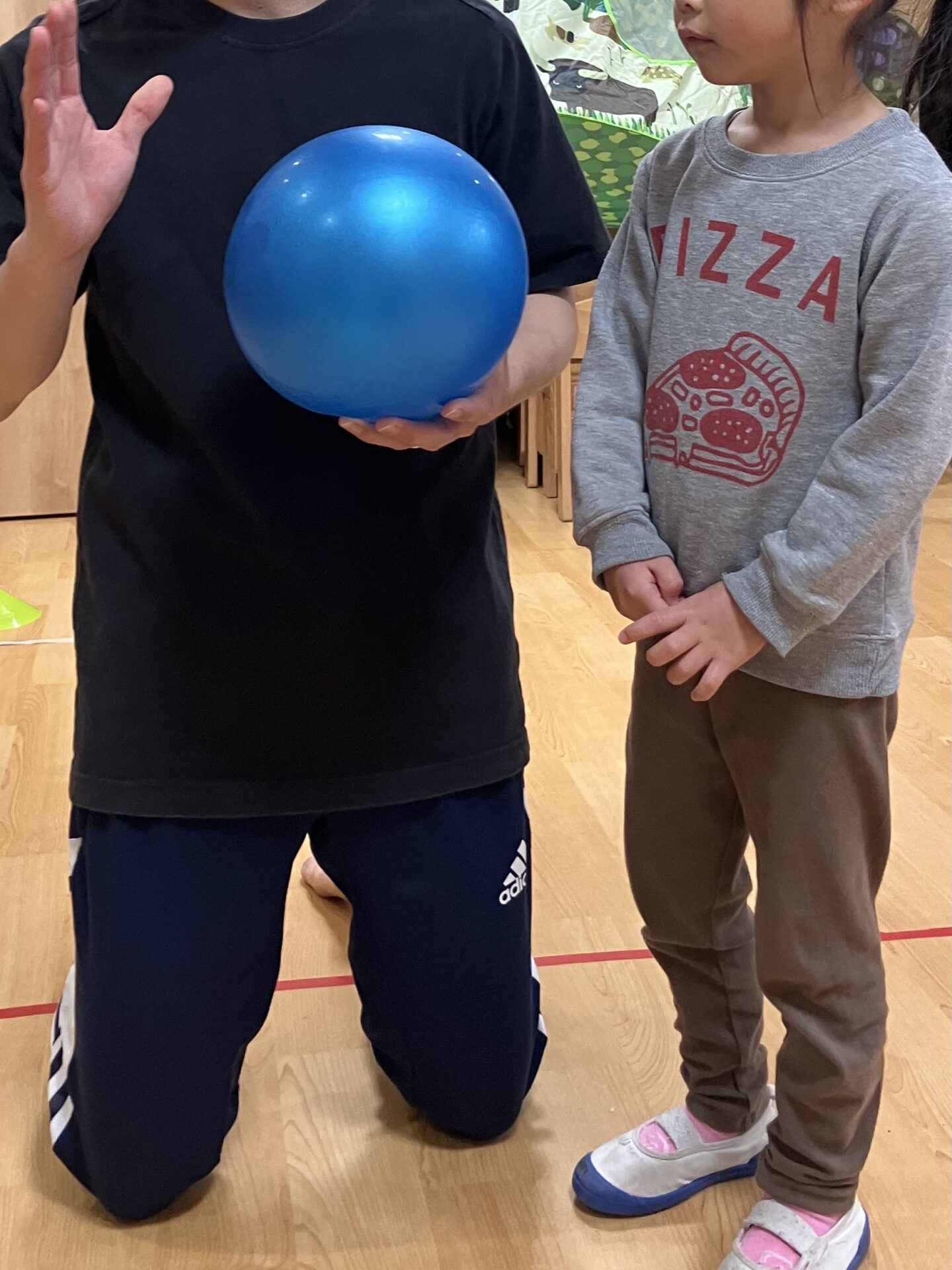 「お友だちが転がしたらすぐにボールが無い方に行くよ」