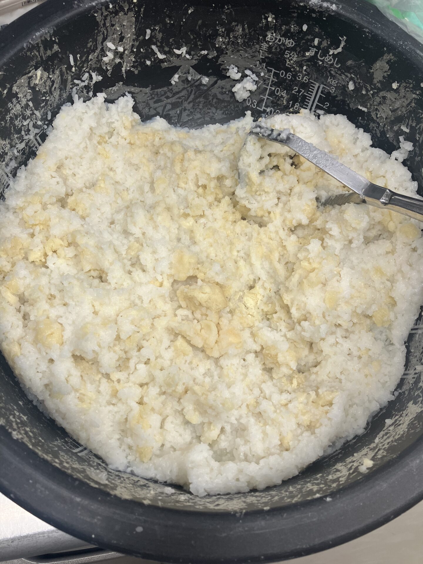 ↑で蒸したものと、綿棒で潰したお米を混ぜ合わせます。