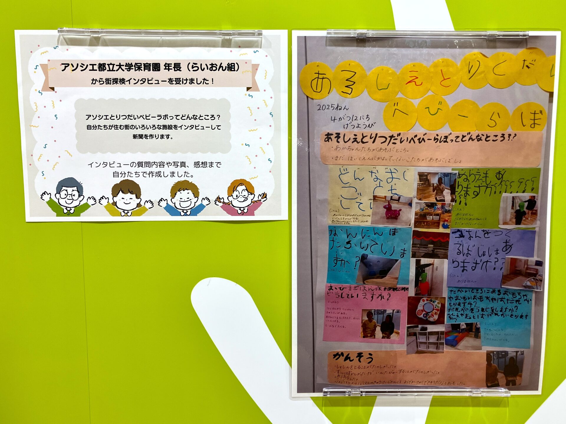先日、近隣の系列園「アソシエ都立大学保育園」の子どもたちから、街新聞作成のため職員がインタビューを受けましたのでご紹介させていただきます🌞