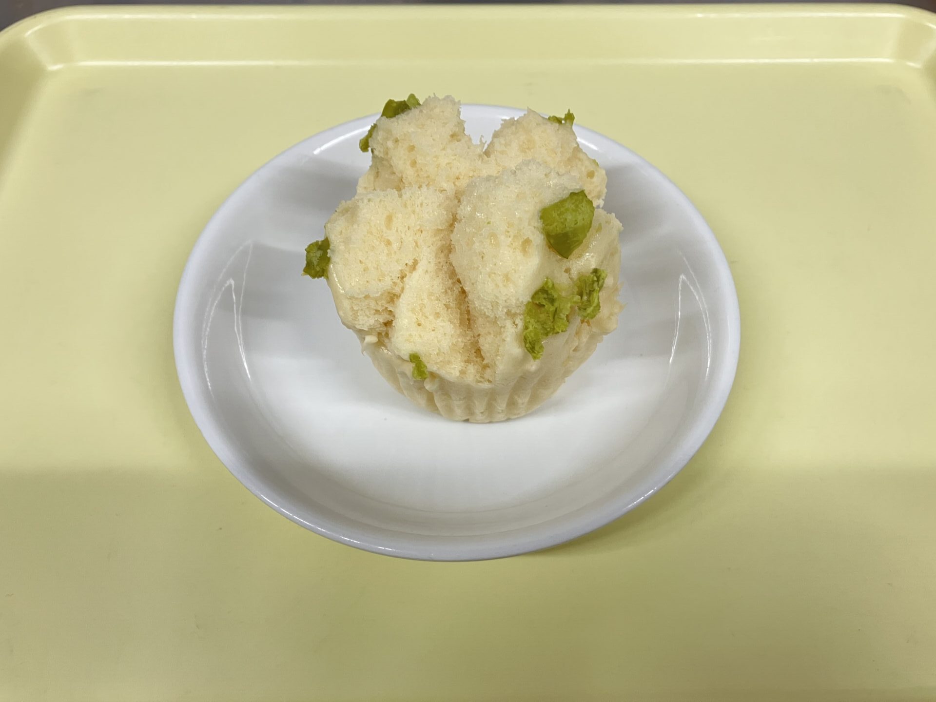 そして、おやつに「そら豆の蒸しパン」が出ました。