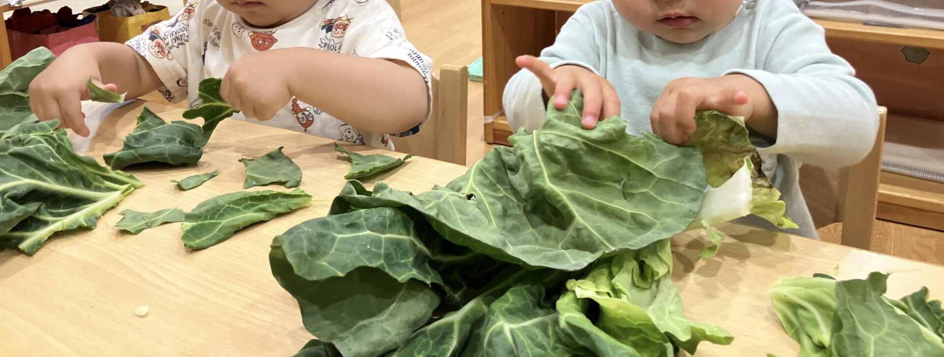 丸ごとキャベツの観察と葉っぱちぎりを行いました。