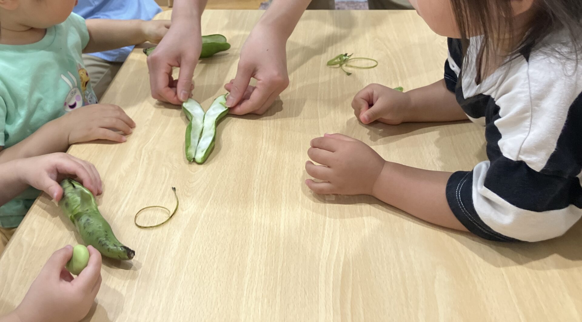 指先を上手に使って「そらまめのさやむき」を行いました。