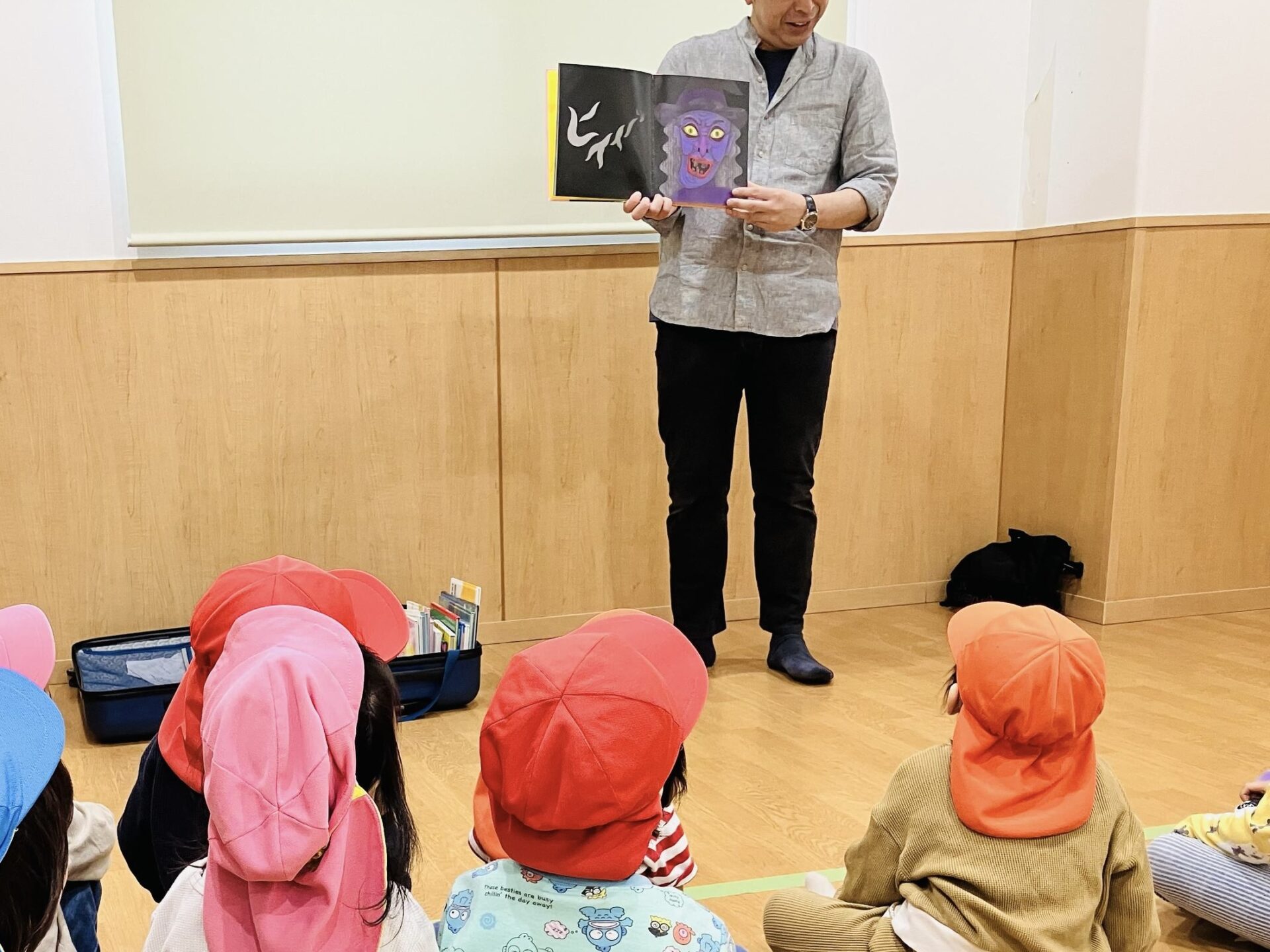 さらに乳児クラスから幼児クラスの様々な年齢の子ども達がいるなかで、45分間絵本の世界に引き込まれていました。