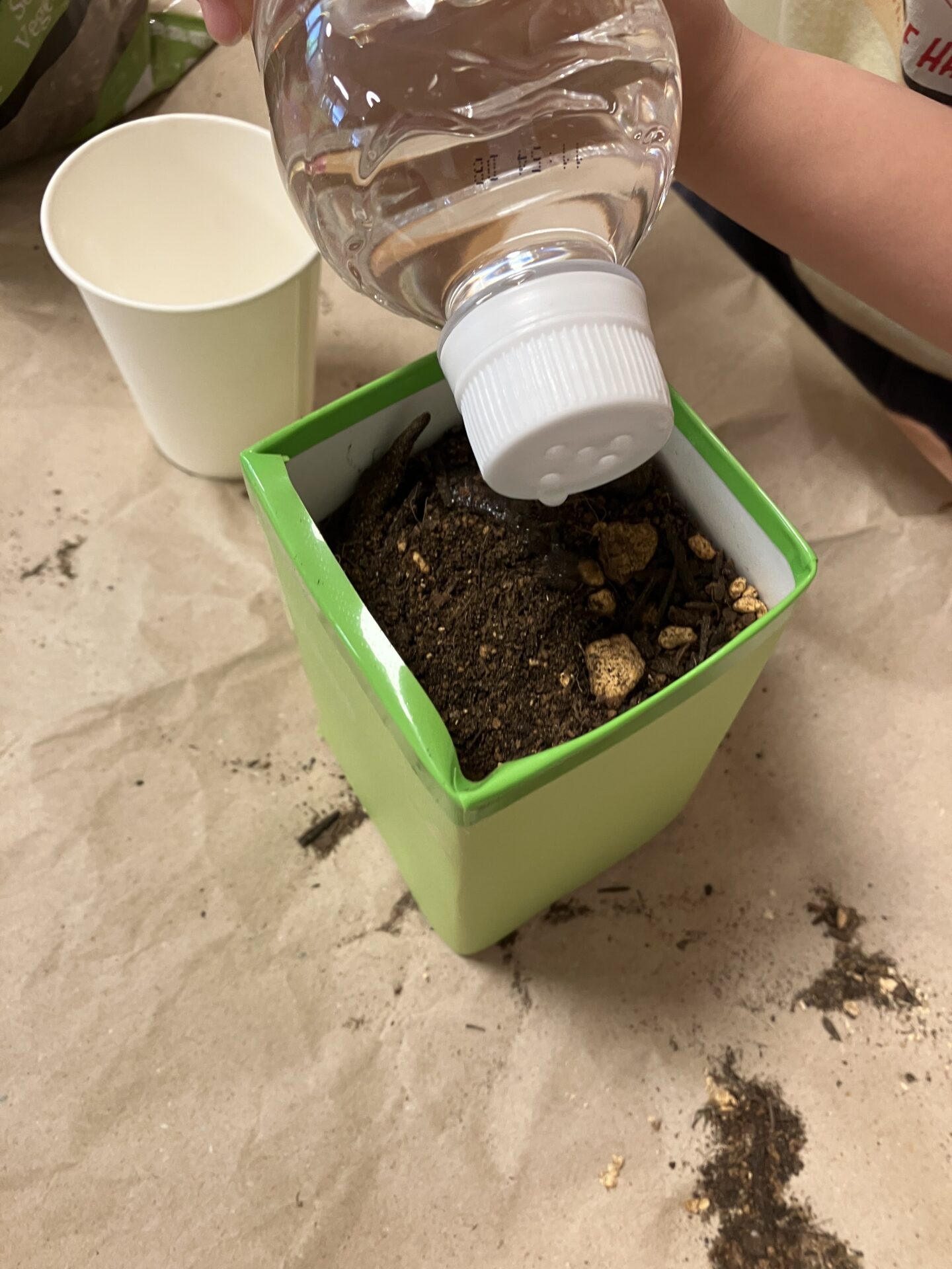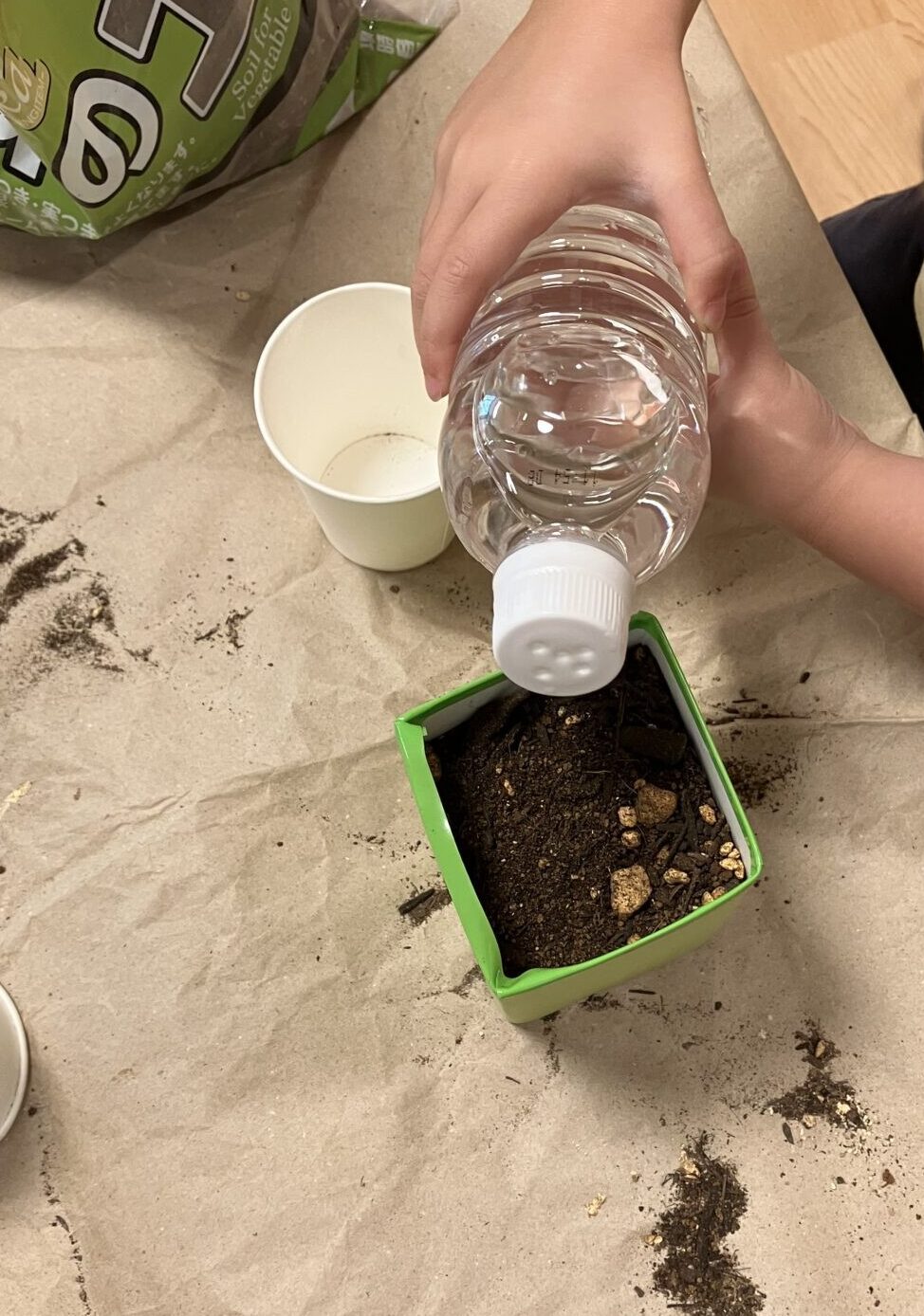 「大きくなりますように!」と願いを込めてたっぷりのお水をかけて作業は終了です。