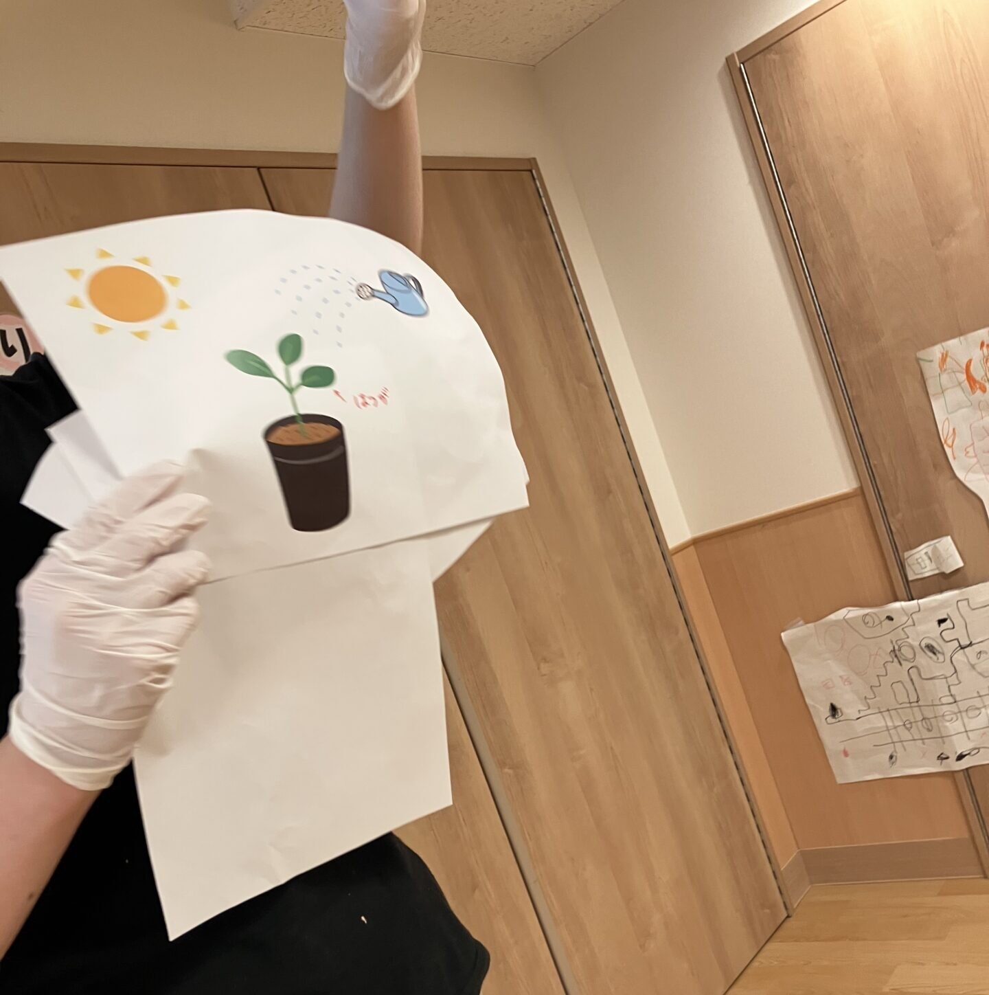 野菜はどのように育っていくかを知ってもらうためにイラストを使い説明しました。