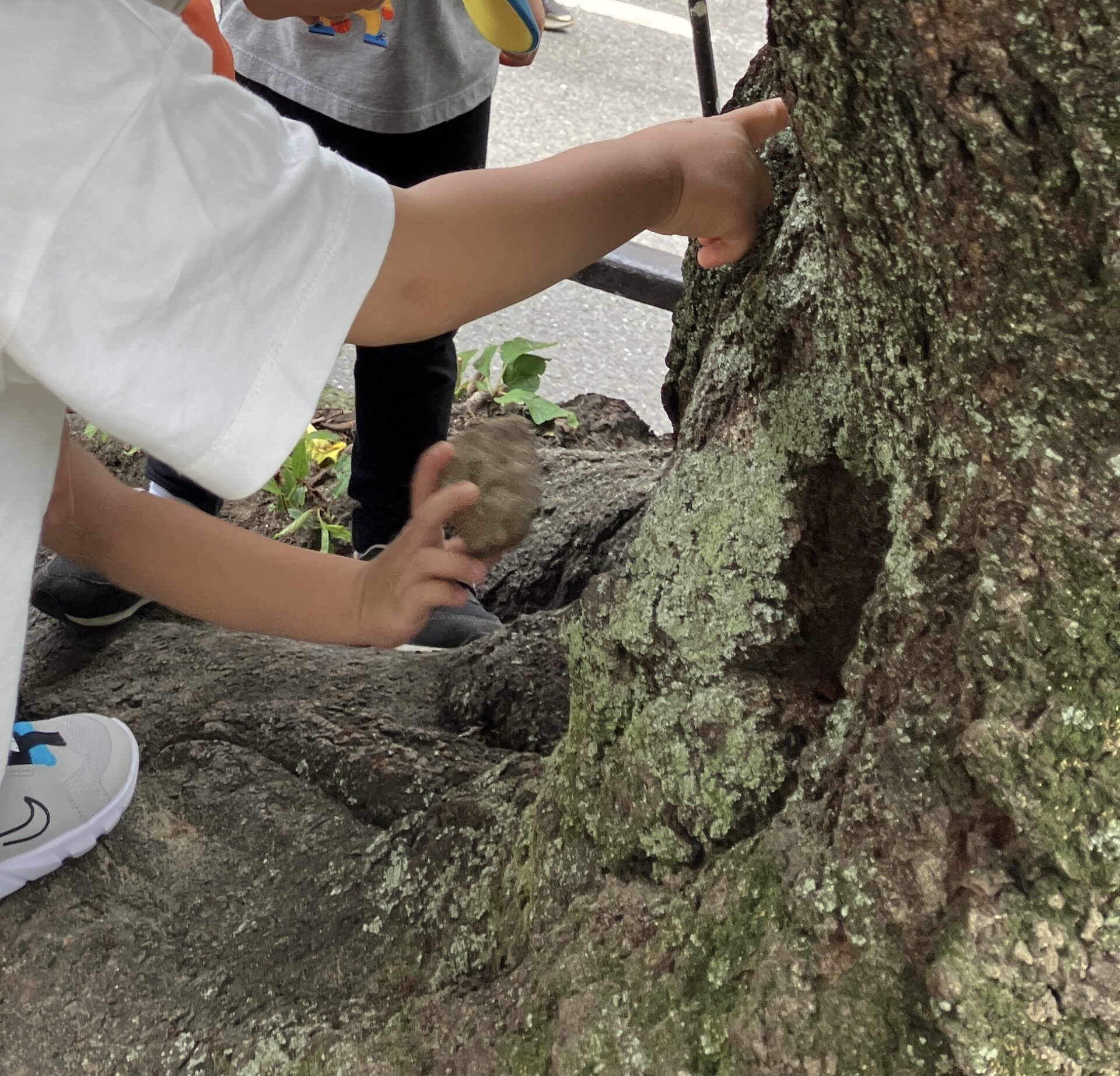 3歳児クラスは絶賛虫ブーム!中でもダンゴムシが一番のお気に入りで、公園に行くと必ずダンゴムシを探しに行きます。