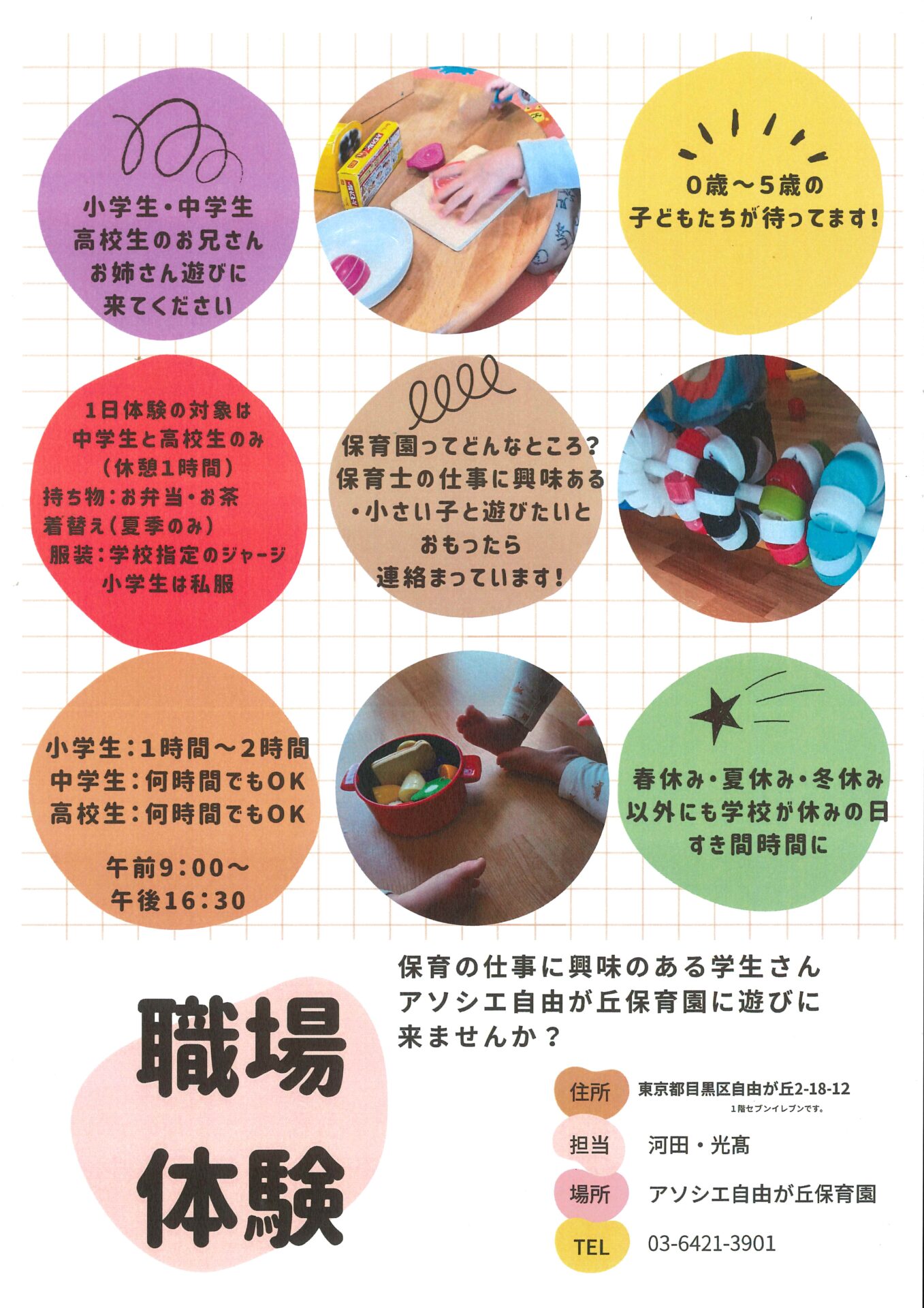 ぜひ、学校のお休みの時に、日々のすきま時間にアソシエ自由が丘保育園に遊びにきませんか?