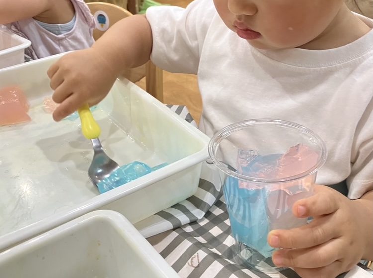 当日がとても暑い日だったので、「つめたーい!」と寒天に大喜びの子どもたち。