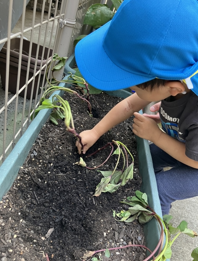 「正解!何のおいもか、わかるー?」と聞いてみると、「さつまいも!!」とすぐに答えることができていて驚きました!