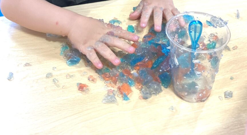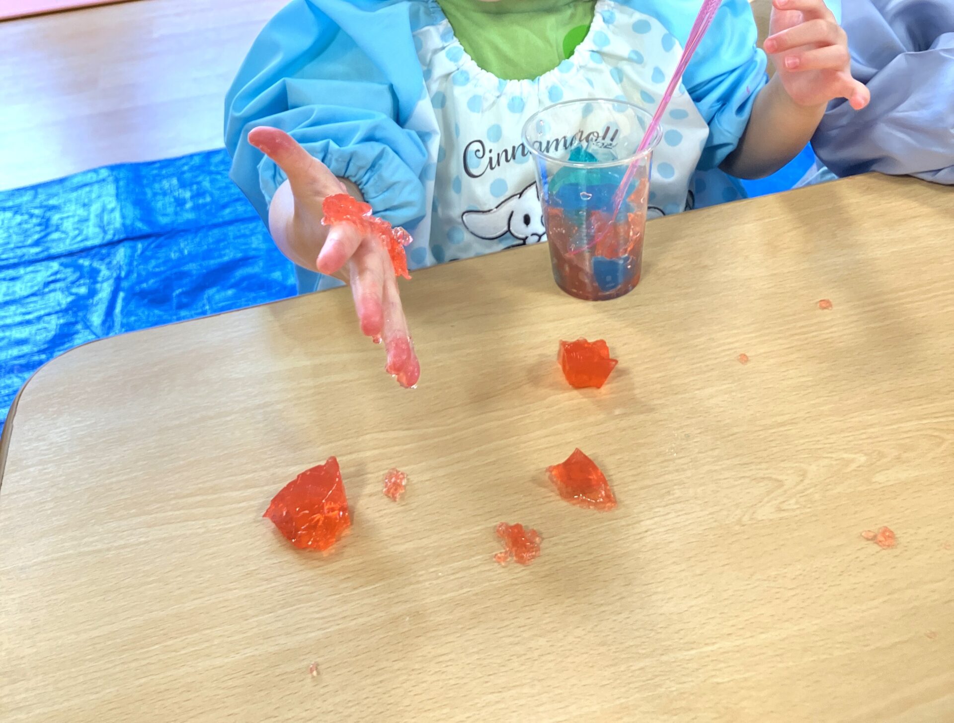 夏にぴったり!涼しげな寒天に触れて遊びました!