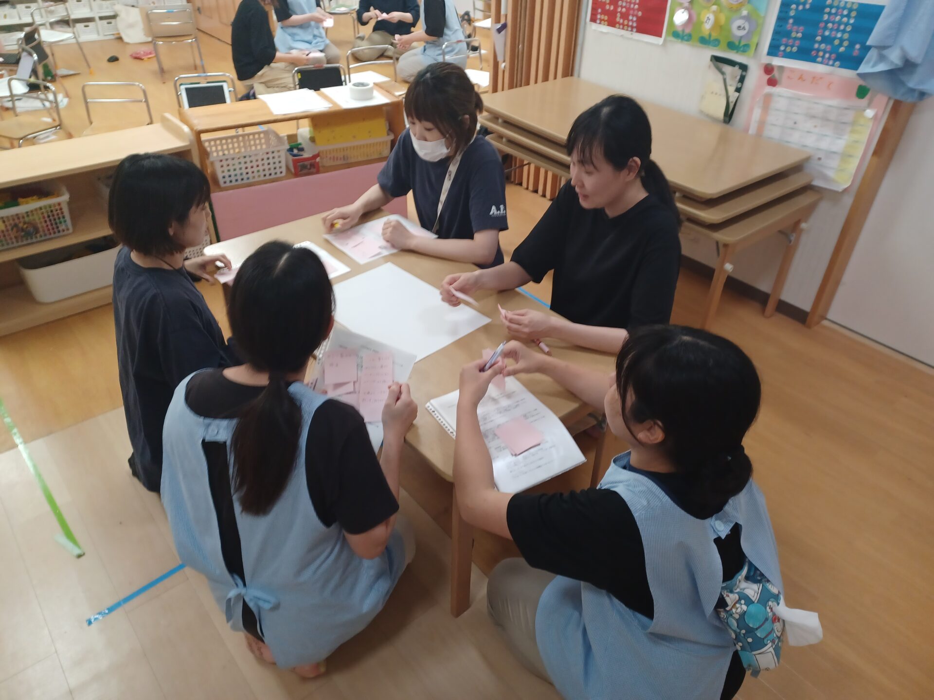 こうした研修は保育士だけでなく栄養士の職員なども参加しマミー保育園全体で意見を出し合います!