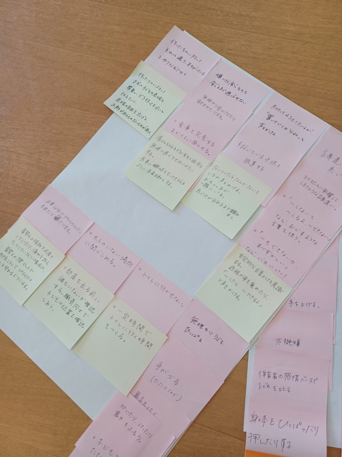 そういったことを起こさないためにはまずはお子様一人ひとりの声に耳を傾けることや肯定的な言葉がけを意識して声がけをする、また保育士同士が協力し合うという意見が上がってきました。