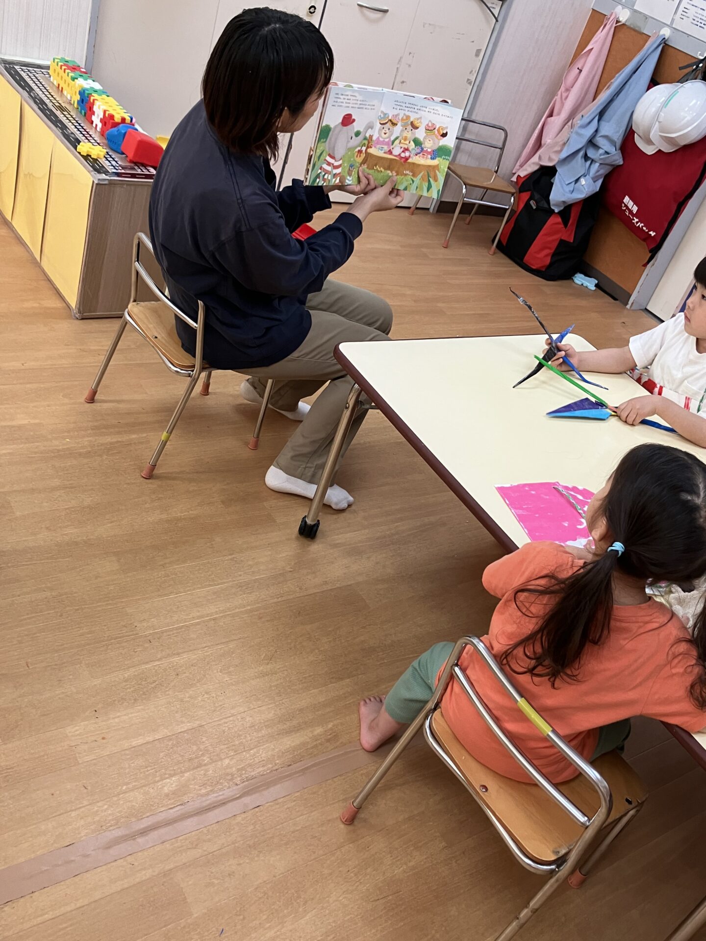 先生に絵本を読んで貰いました!みんな真剣に聴いています…。