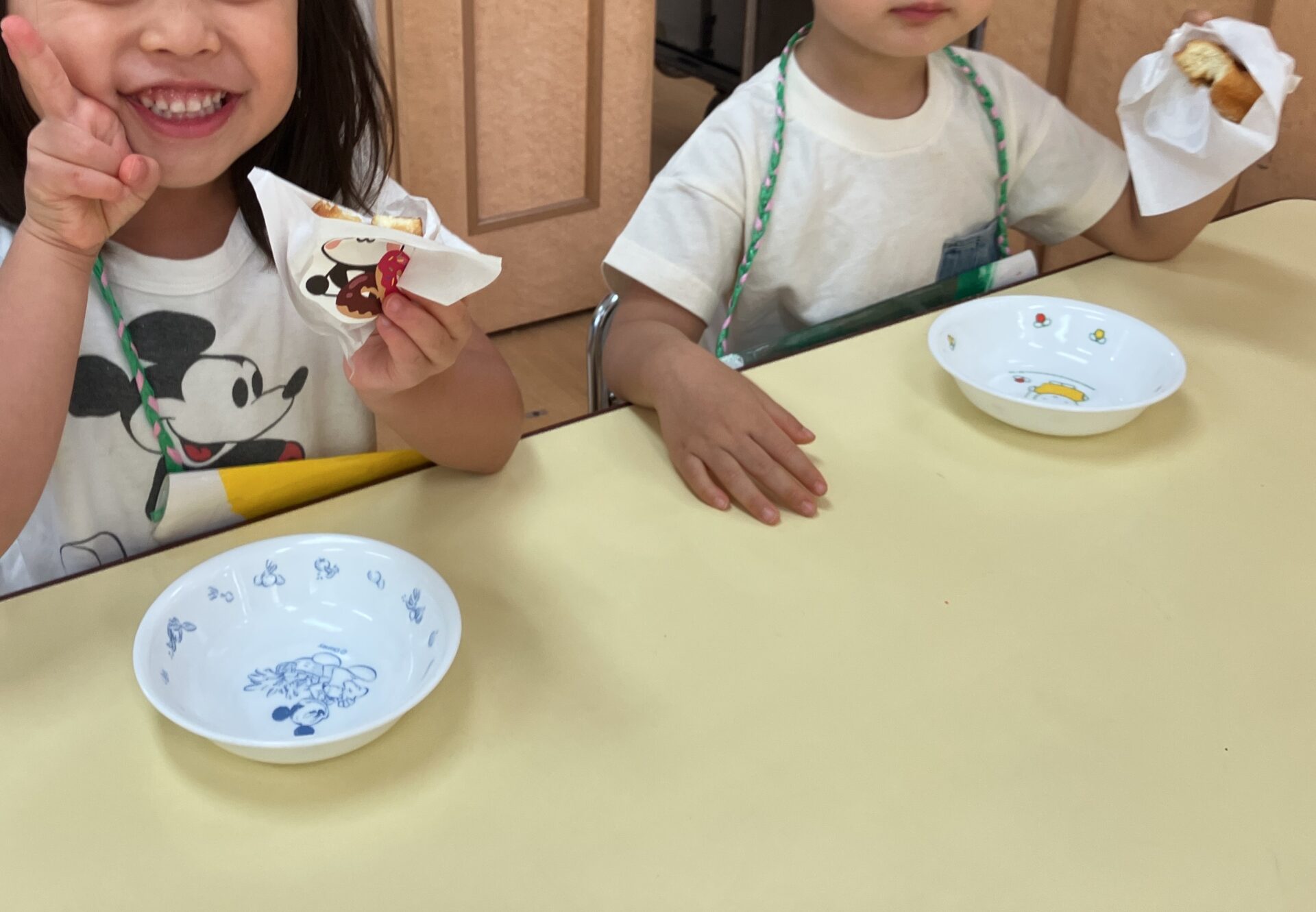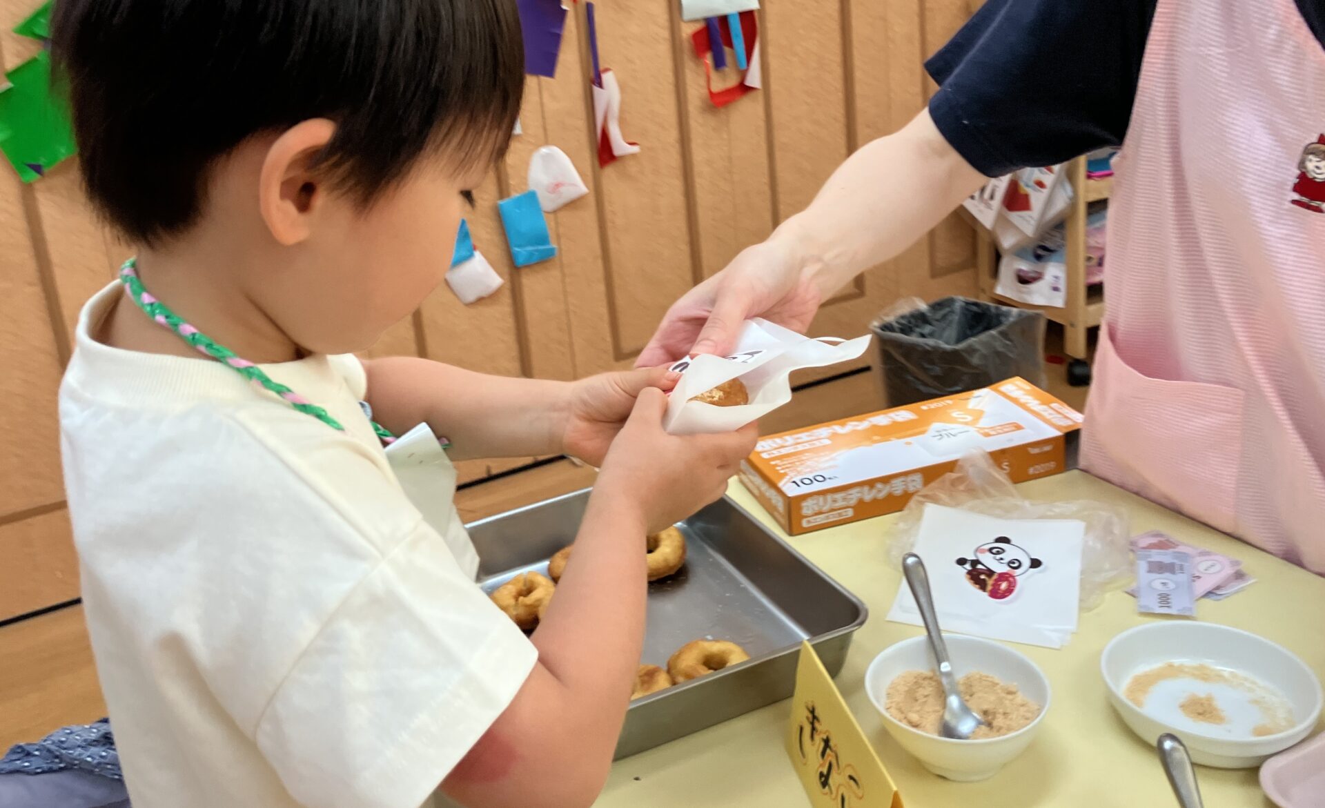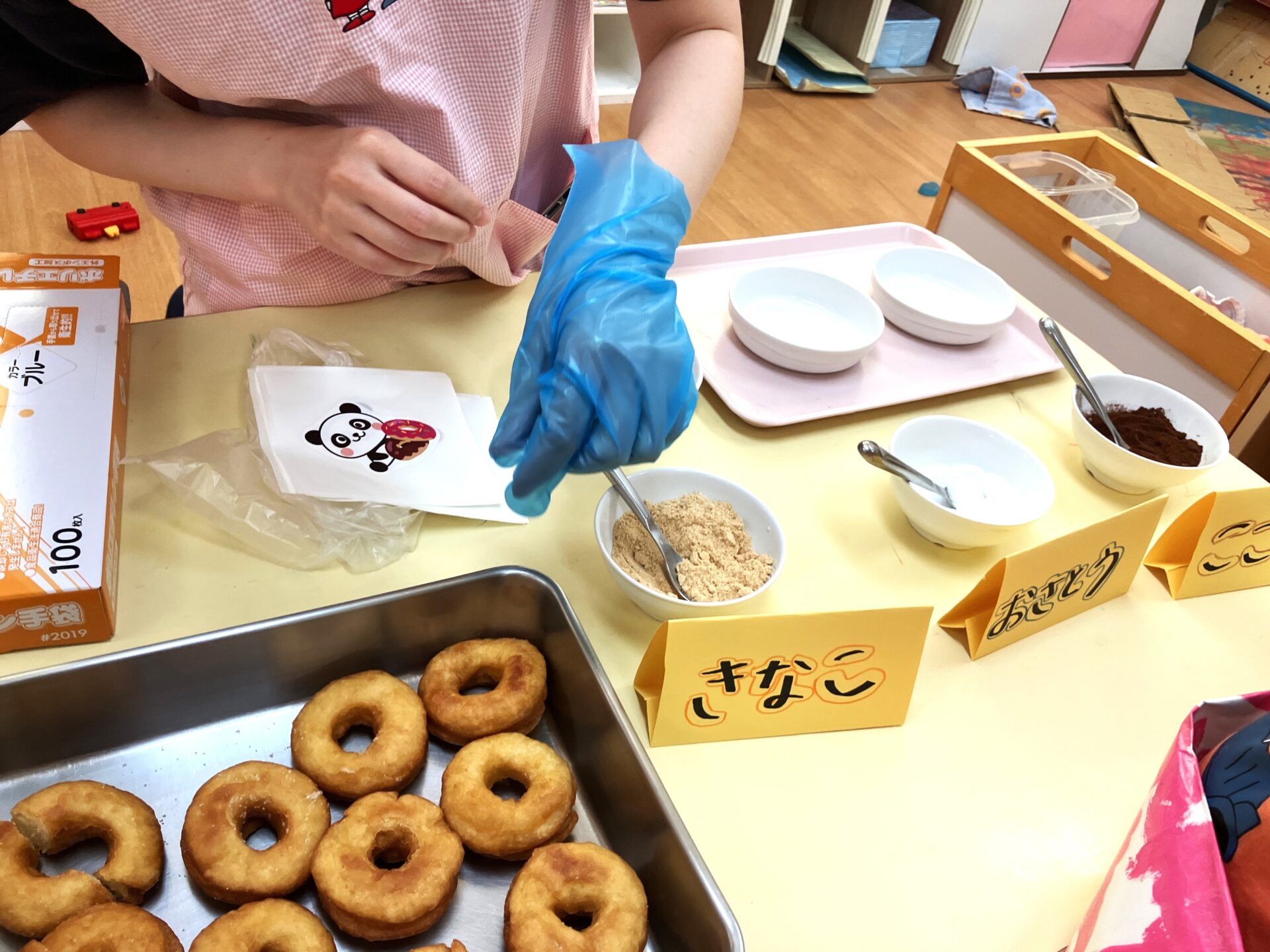 ぱんだ組(3歳児)では、ドーナツやさんごっこを行いました。