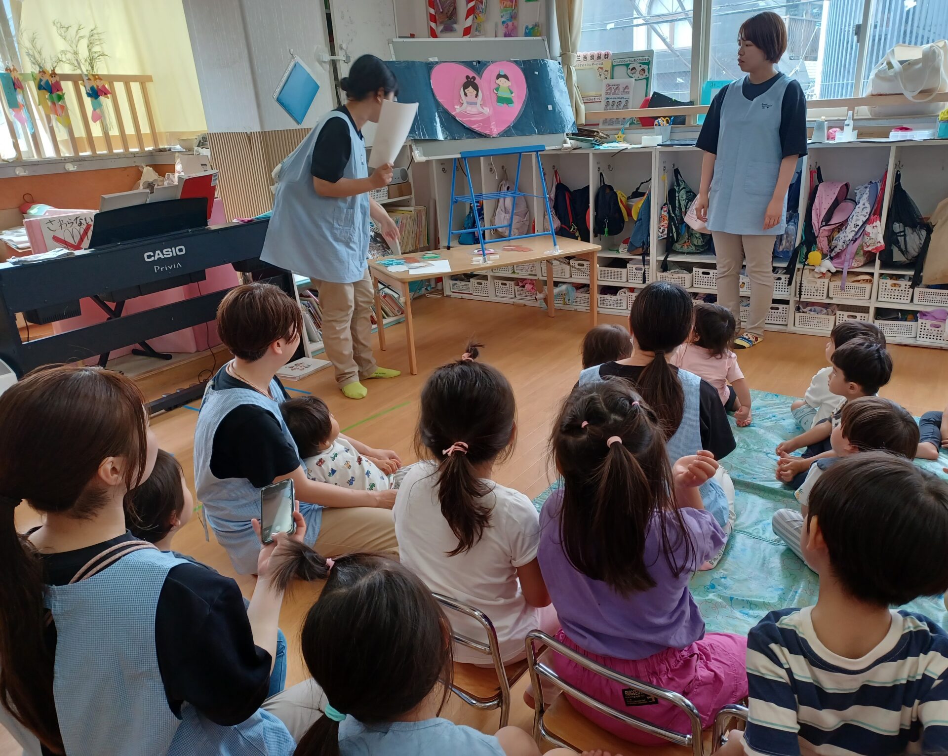 会では全クラス対象に七夕についてパネルシアターにてお話をし楽しく過ごしました!