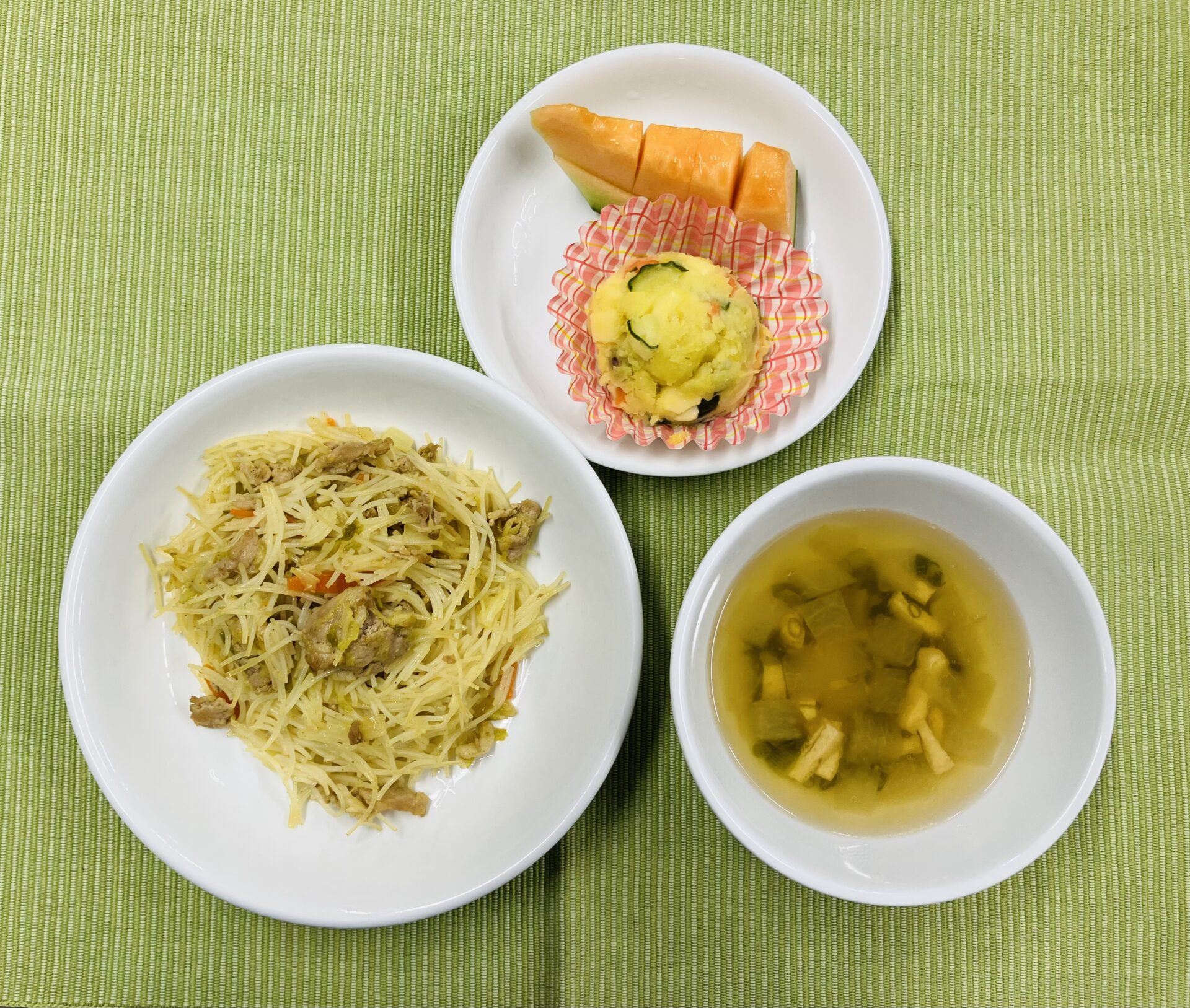 お昼の主食では初めてのビーフン、カレー味で大人気♪