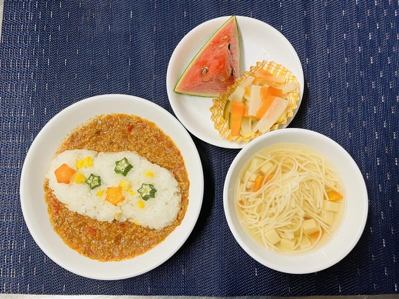 ご飯を天の川に見立ててオクラと星型人参でトッピング✩