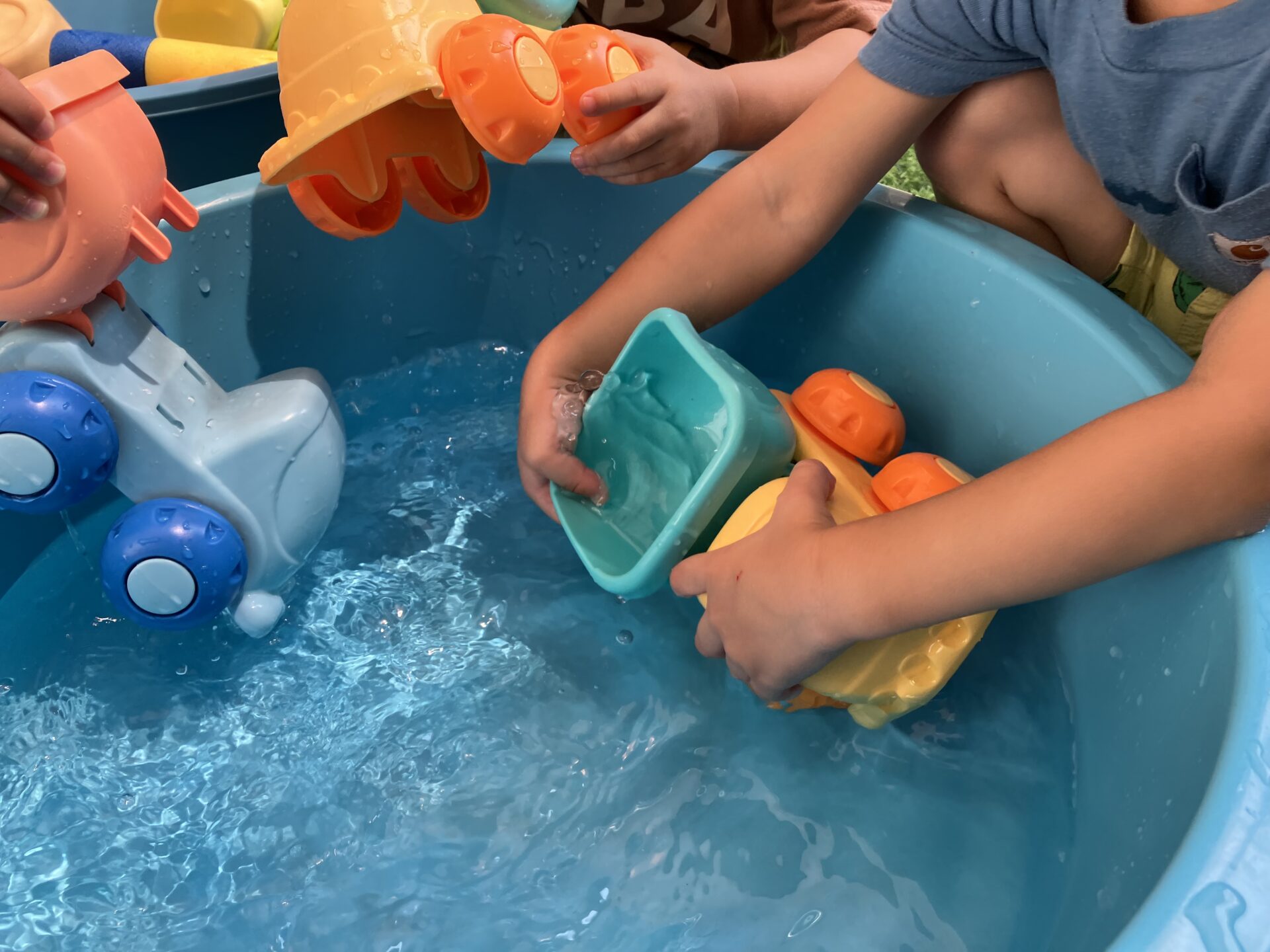 ダンプカーの玩具に水を入れたりと