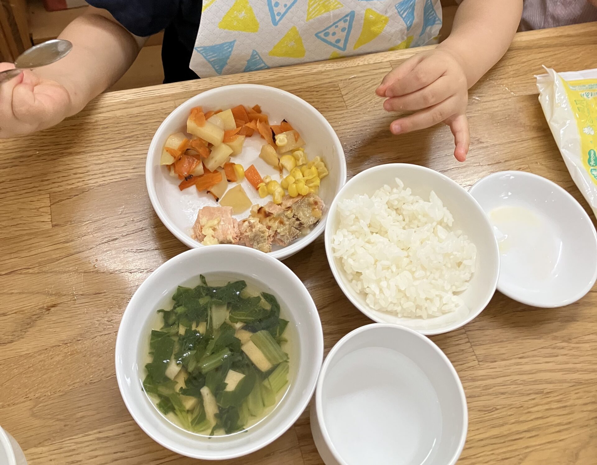 今回は昼食で蒸して提供し、ご飯やおかずなど好きなものに入れられるように提供しました。