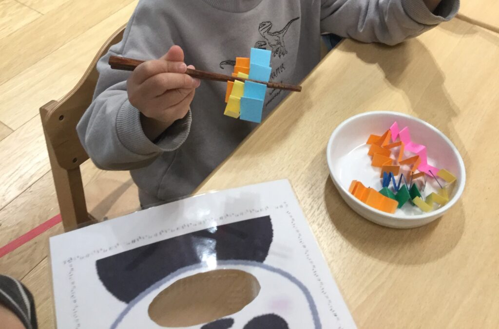 今年度初めてお箸を使ったときは「使い方が難しい~」と話す子どもたちでしたが、