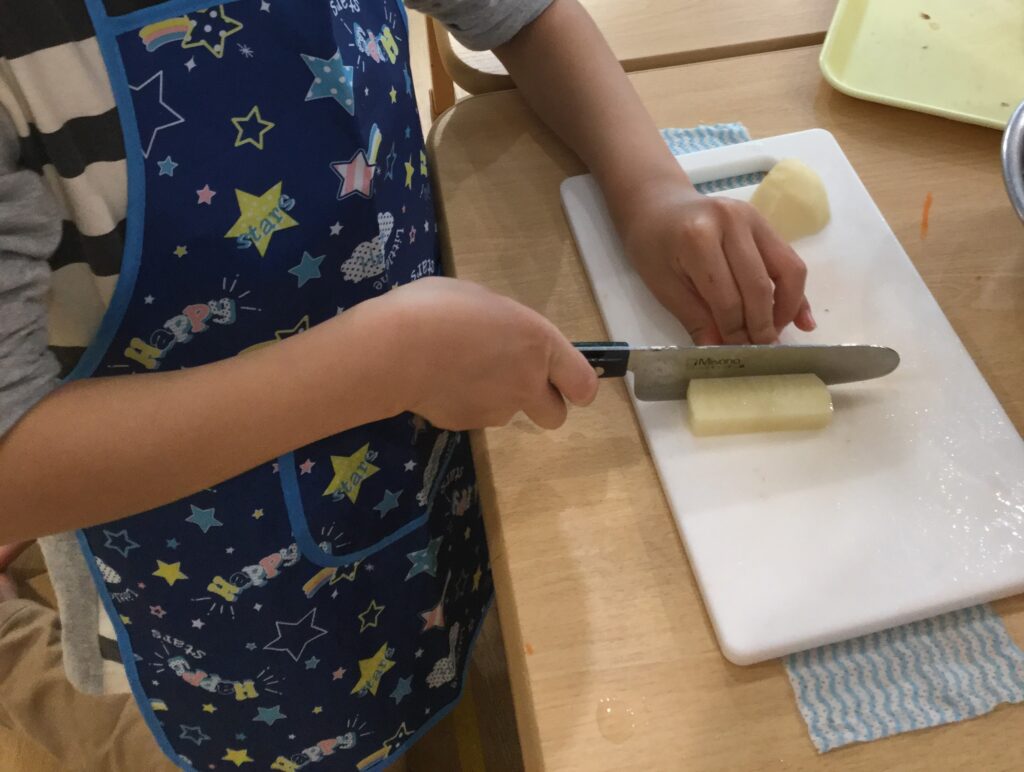 やりたい!楽しみ!と包丁を使う食育をとても楽しみにしている子どもたちでした。
