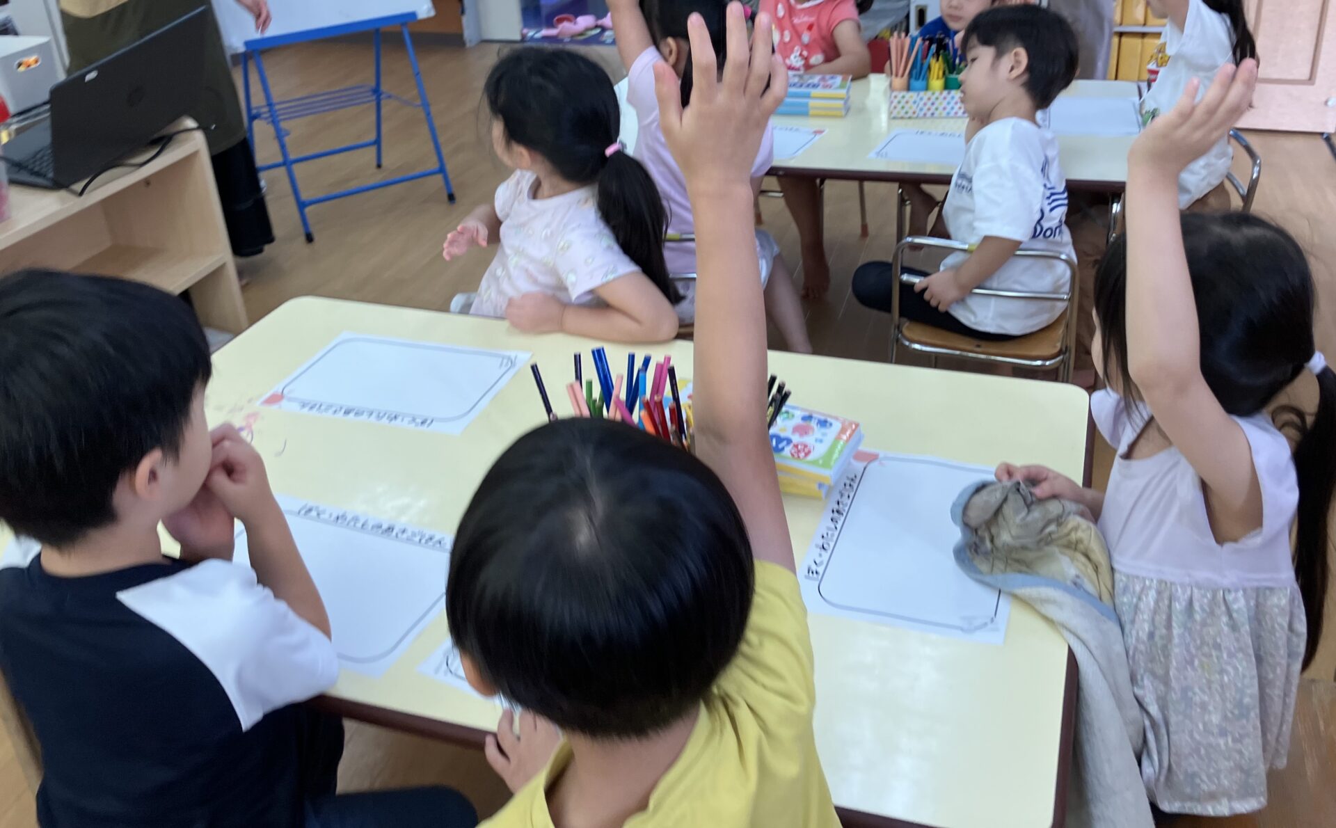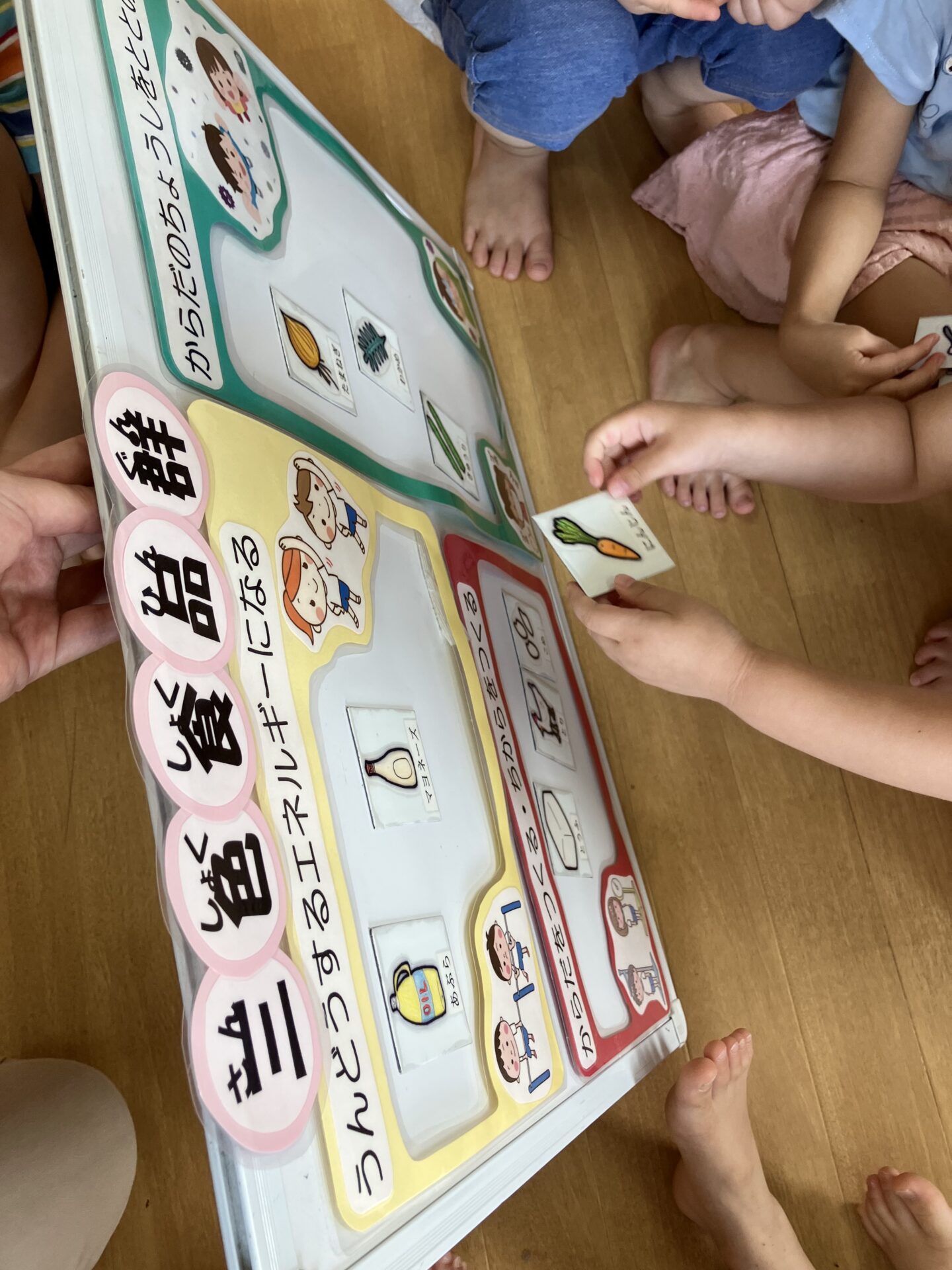 後日、きりん組(4歳児)で三色食品群の復習をしました!