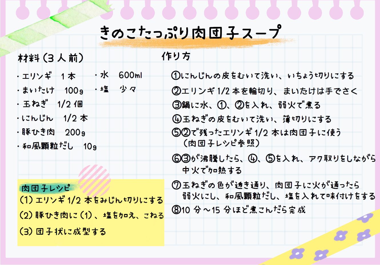 モグモグごはん「きのこたっぷり肉団子スープ」