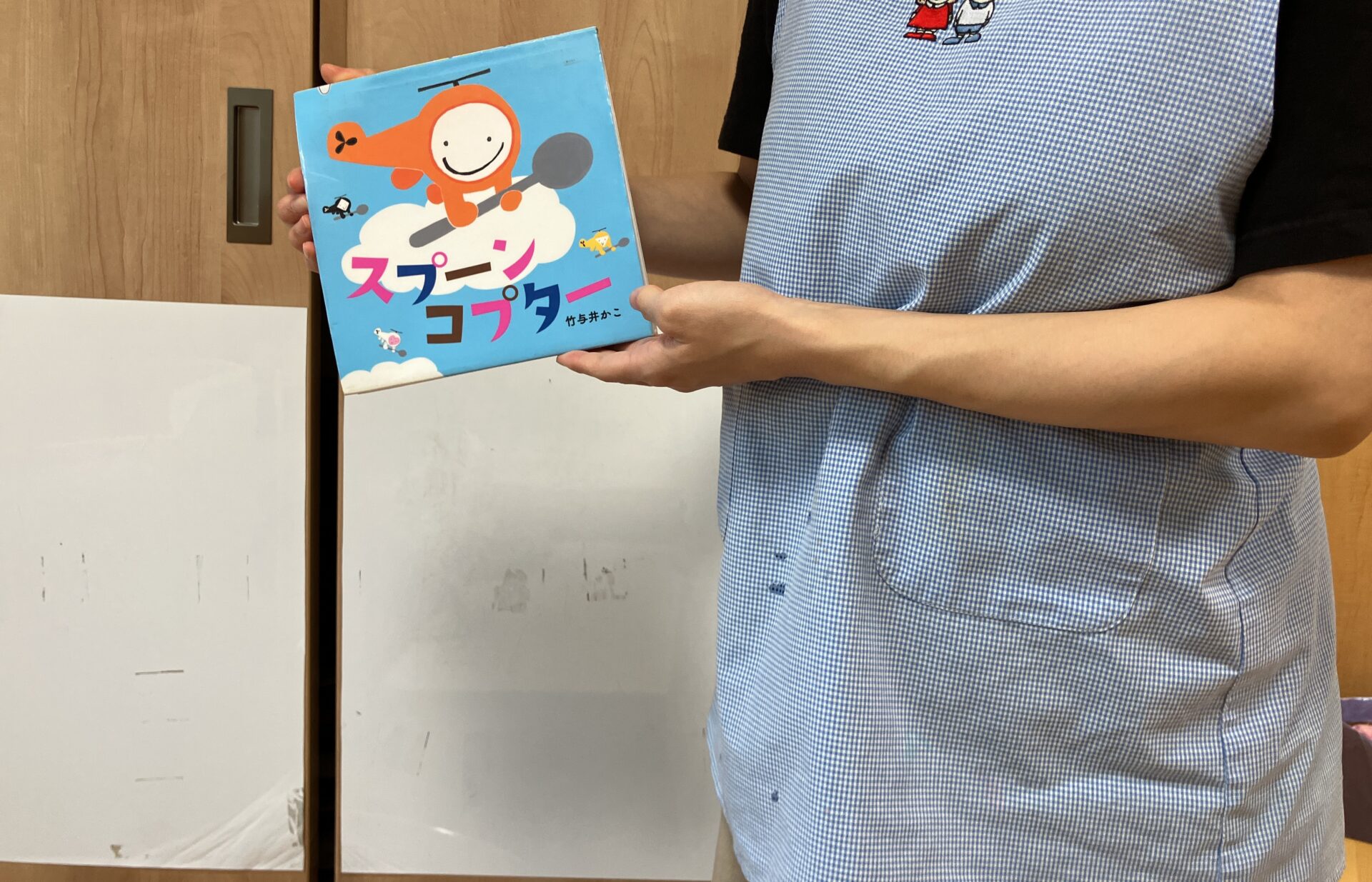 まずは「スプーンコプター」という絵本を読んでから、スプーンを持ってみます。