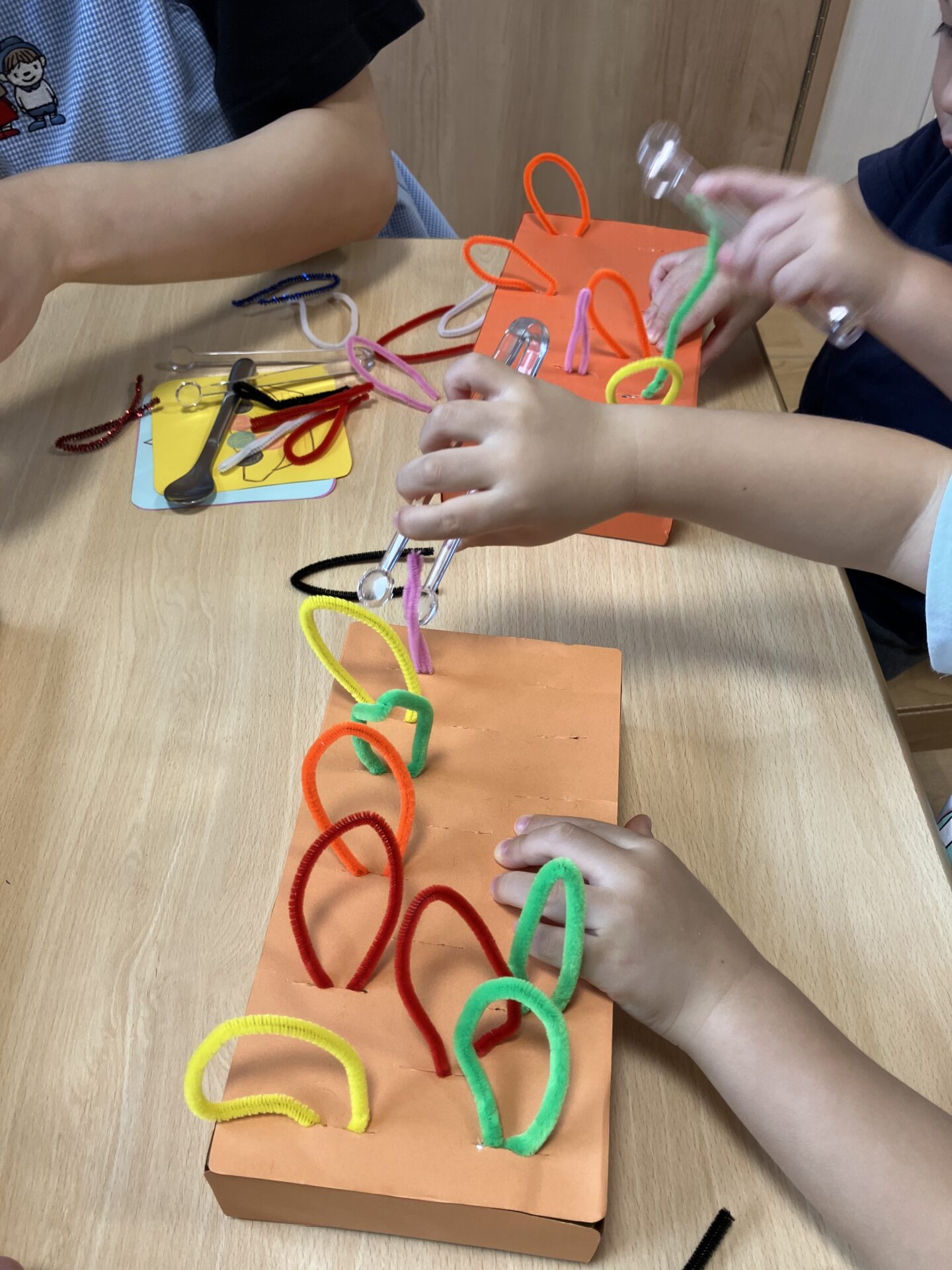 ボタンかけ、糸通し、シールはがしなども指先のトレーニングになりますので是非ご家庭でもお子さんと一緒に楽しく指先遊びを行ってみてください☆