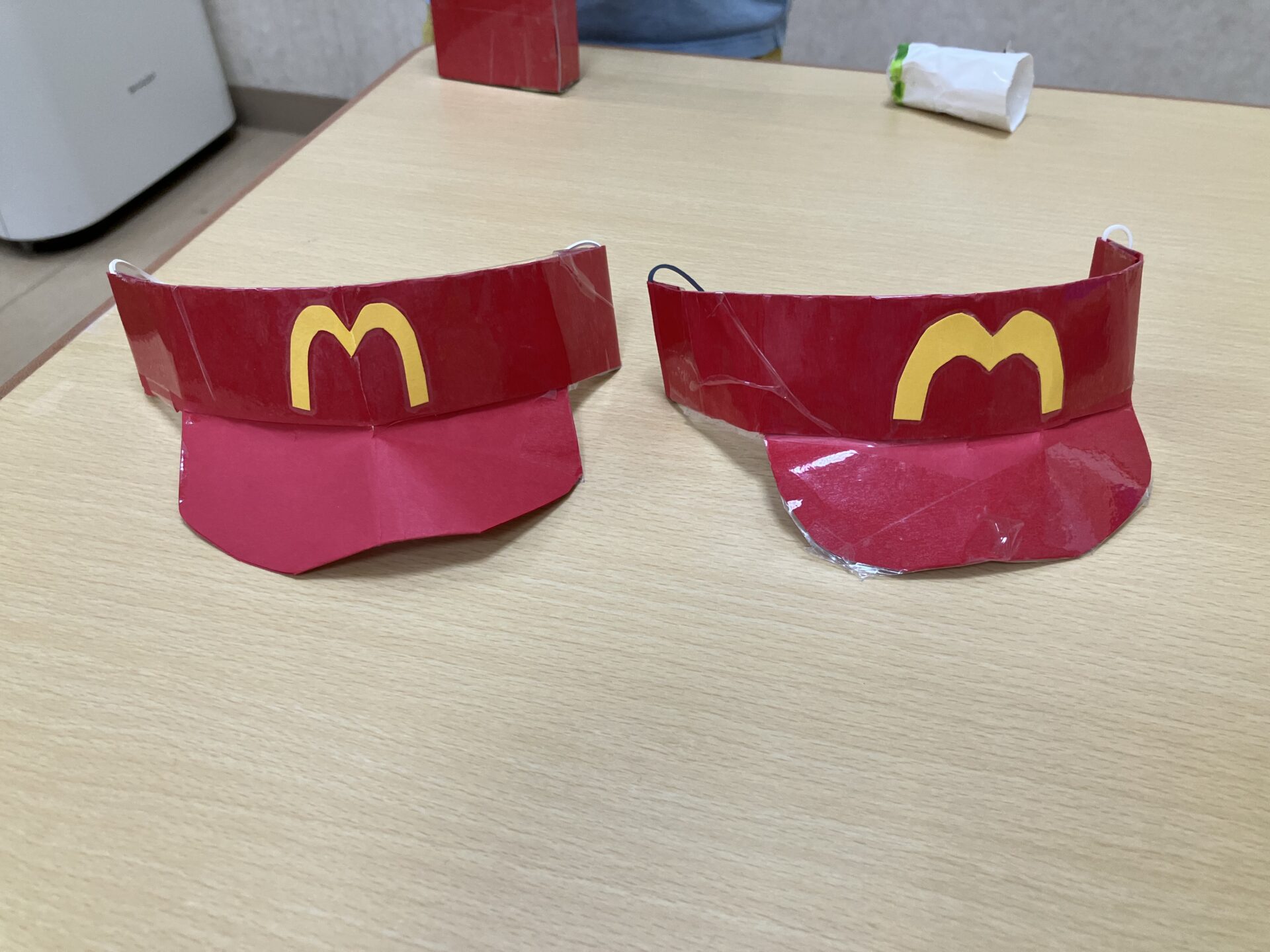 子どもたちの「なりきりたい!」という気持ちを受けて、保育者がファーストフードの店員さん風の帽子を作ってみると…もう大喜び!