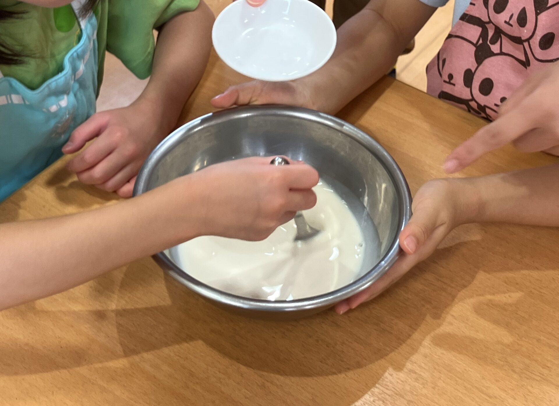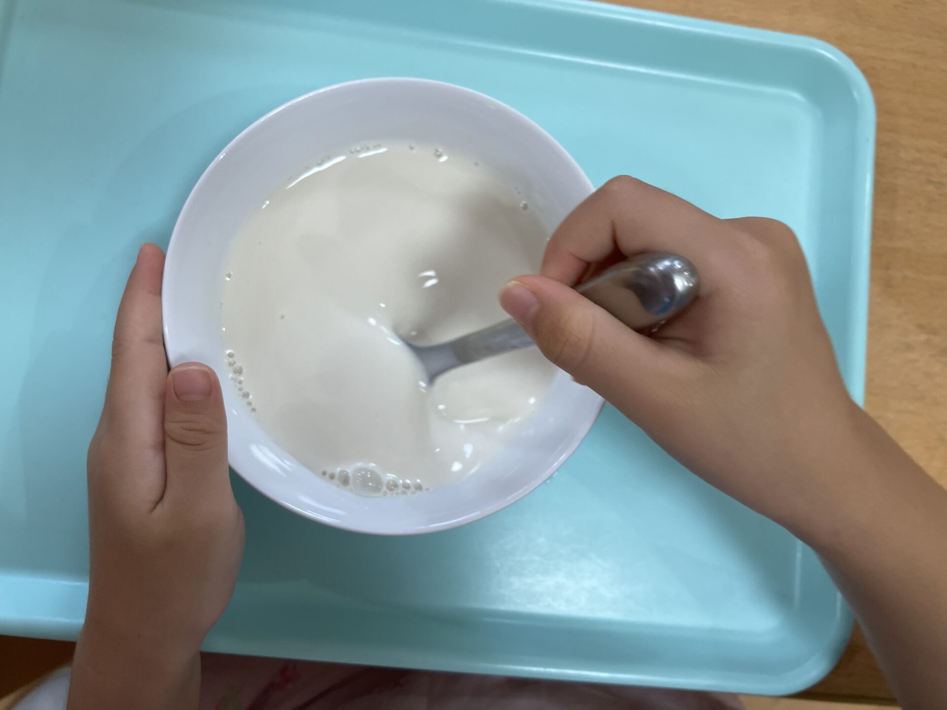きりん組では豆乳とにがりを使って、豆腐作りをしました♪