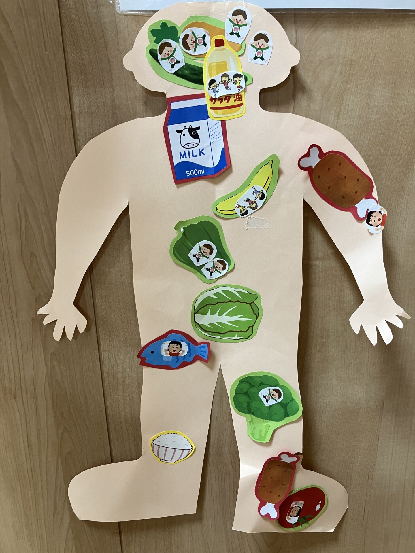 野菜やお肉、魚、ごはんからパワーをもらってみんなの体が出来ているよ💪