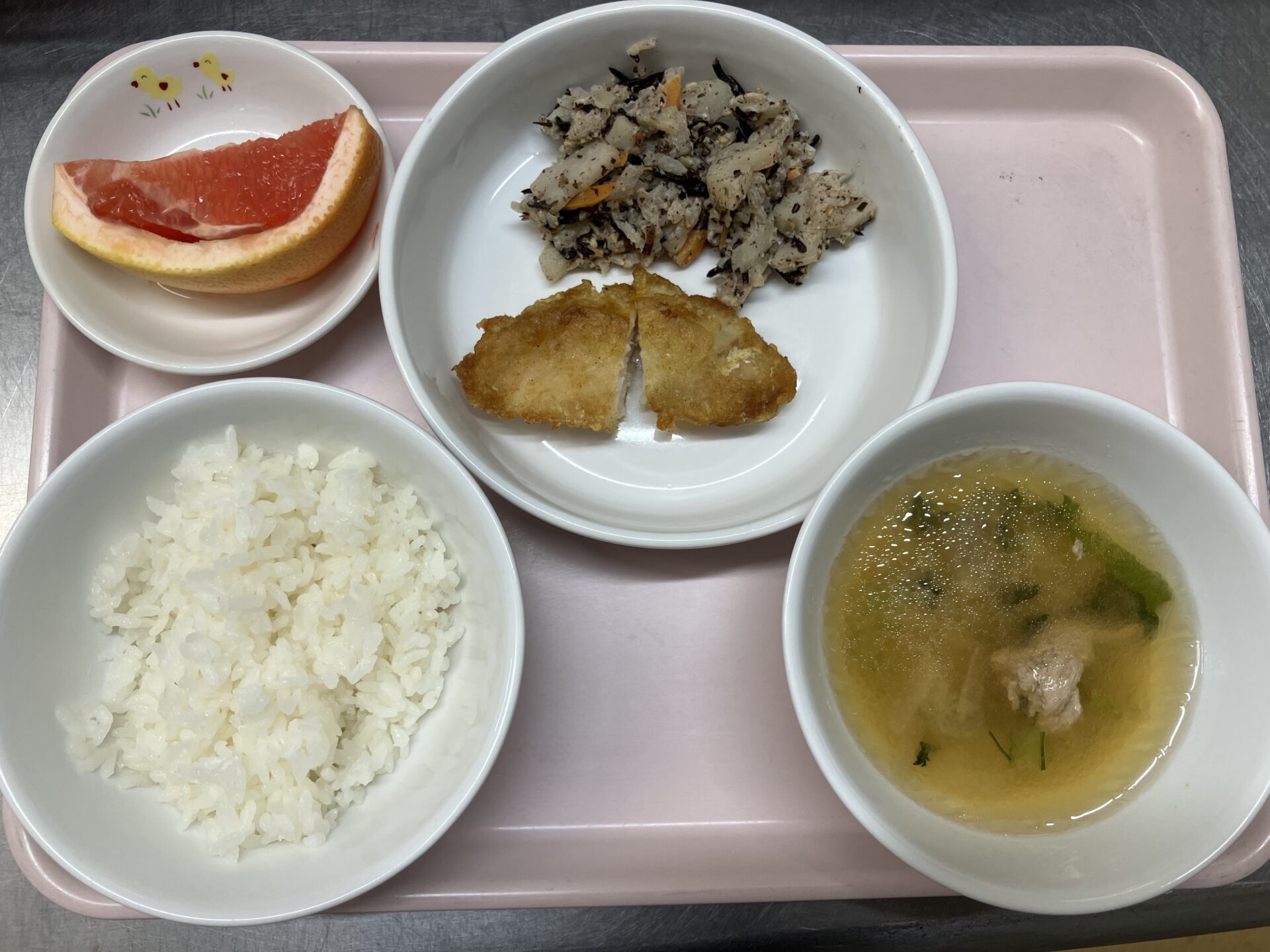 「カミカミメニュー」として、「根菜サラダ」が出ました!れんこん、にんじん、ひじき、切り干し大根が入っています!よく噛んで食べてね~と声掛けをすると意識している様子が見られました。