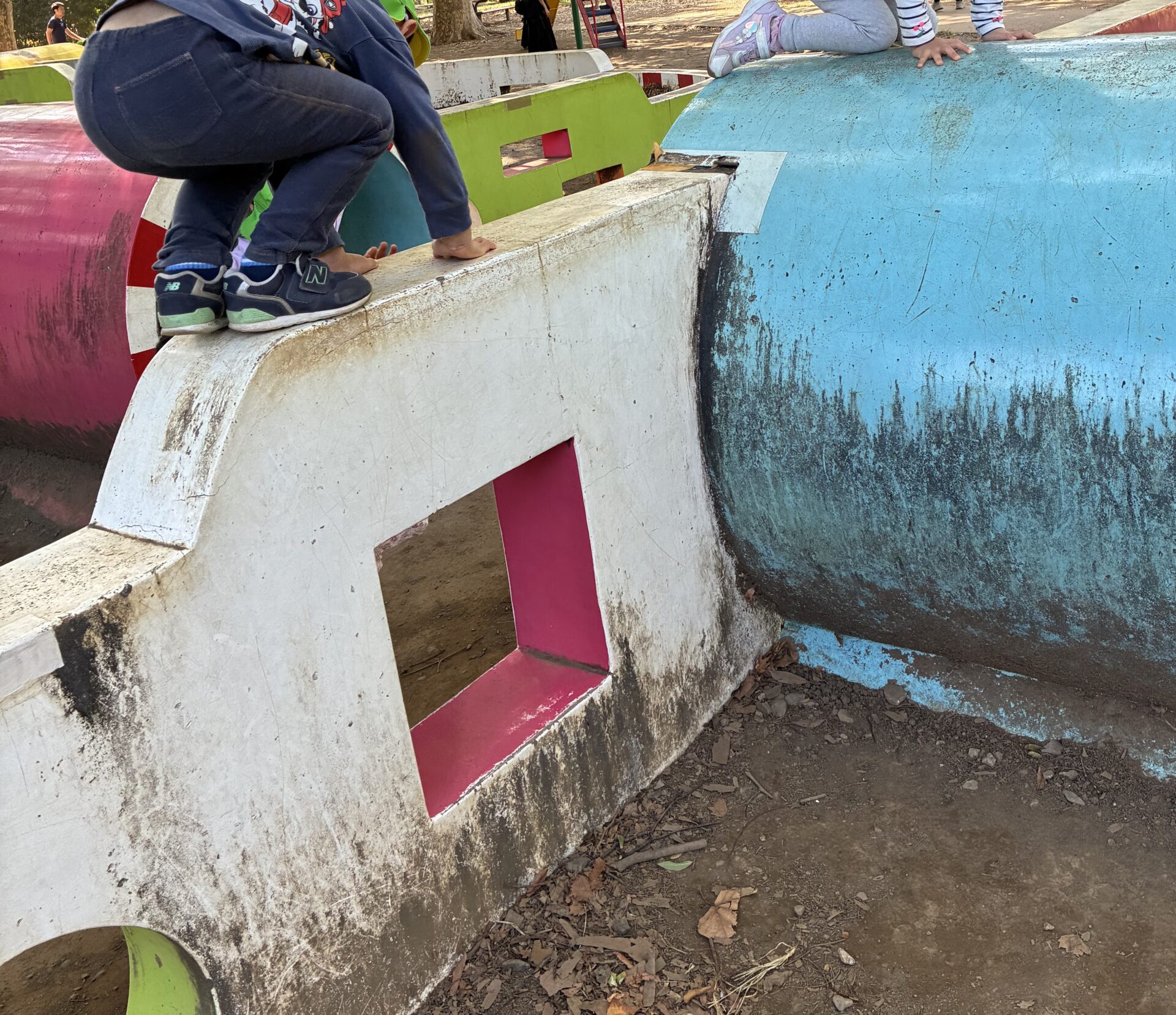 「通り抜けられるかな?」とよじ登ってみたものの・・・大丈夫??