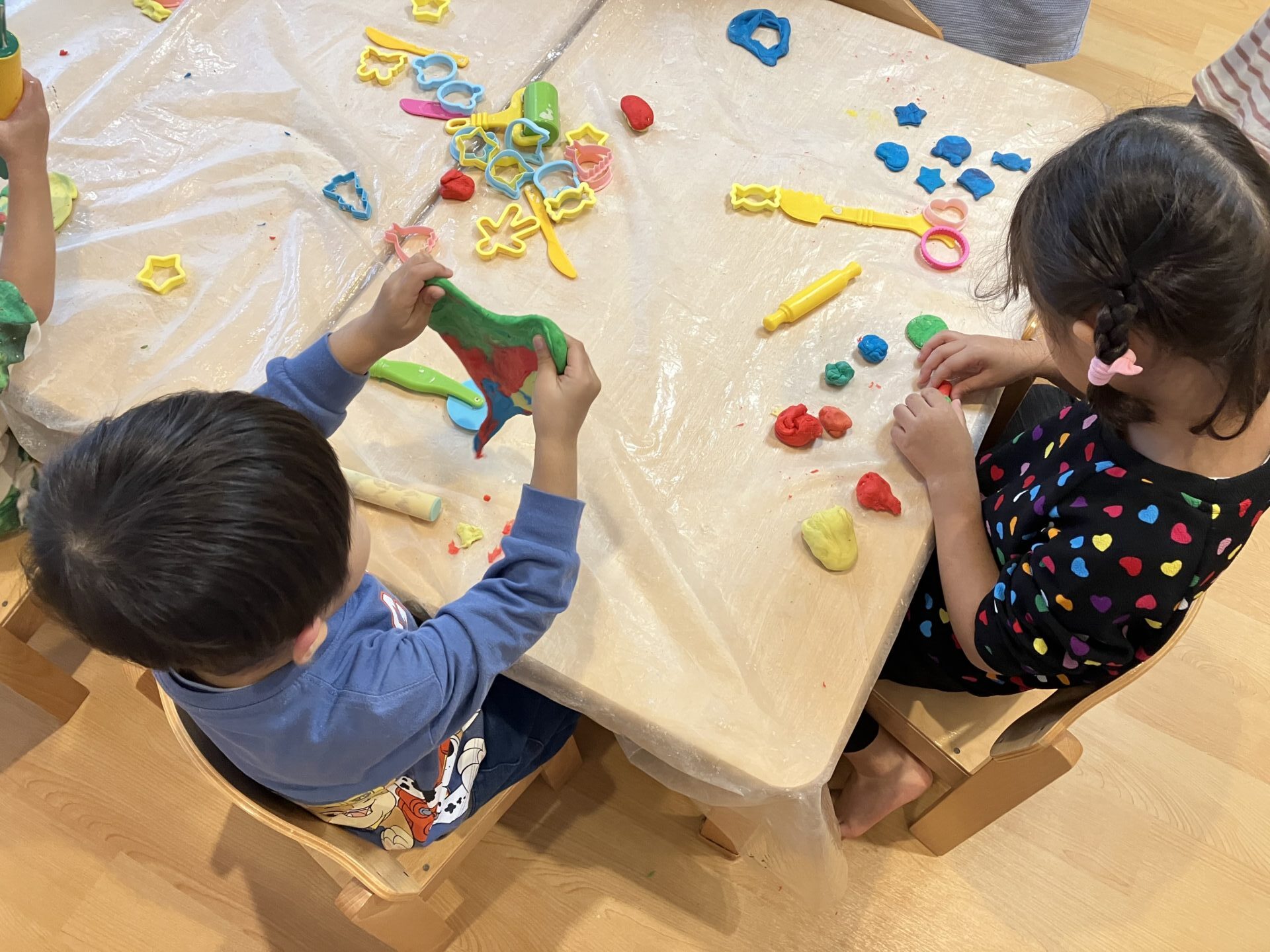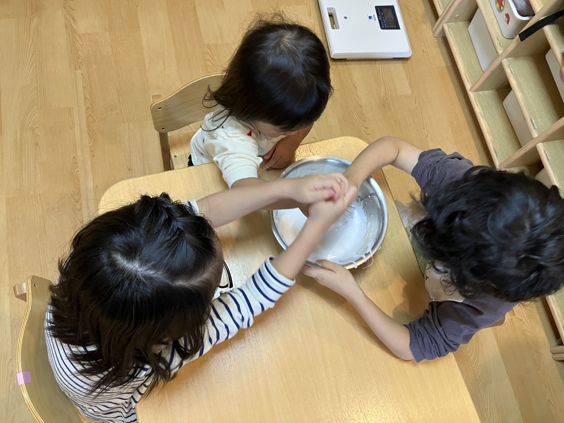 小麦粉粘土やスライム作りの遊びに分かれて過ごしました。