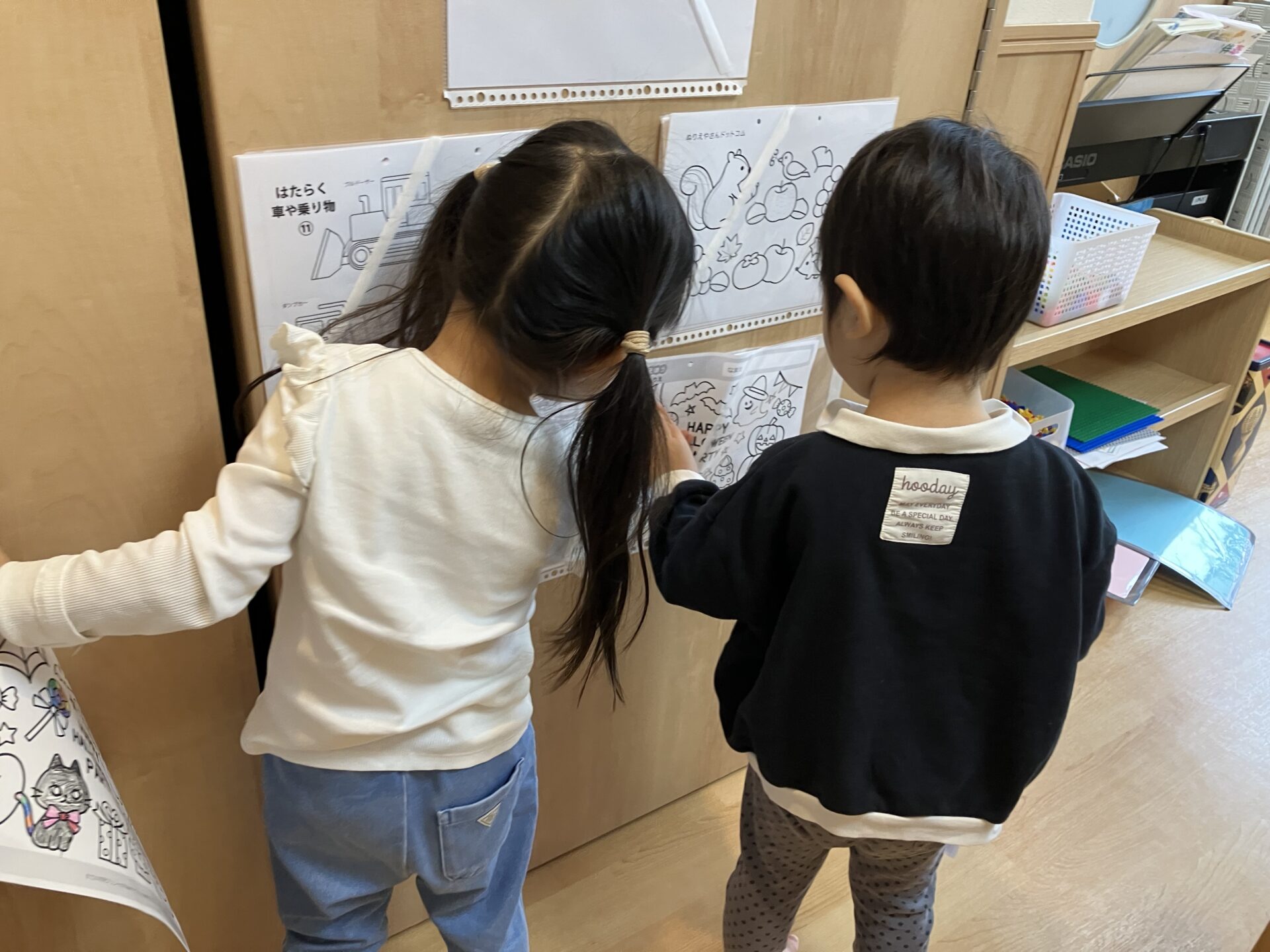 この日は、塗り絵や電車、
