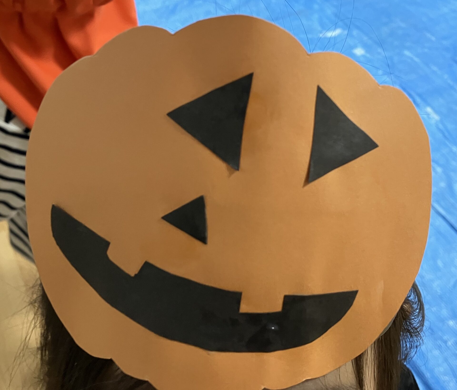 2歳児クラスです。かぼちゃのおばけのお面を作りました!