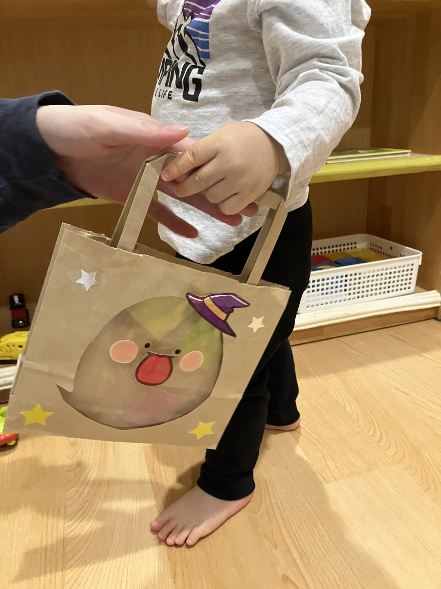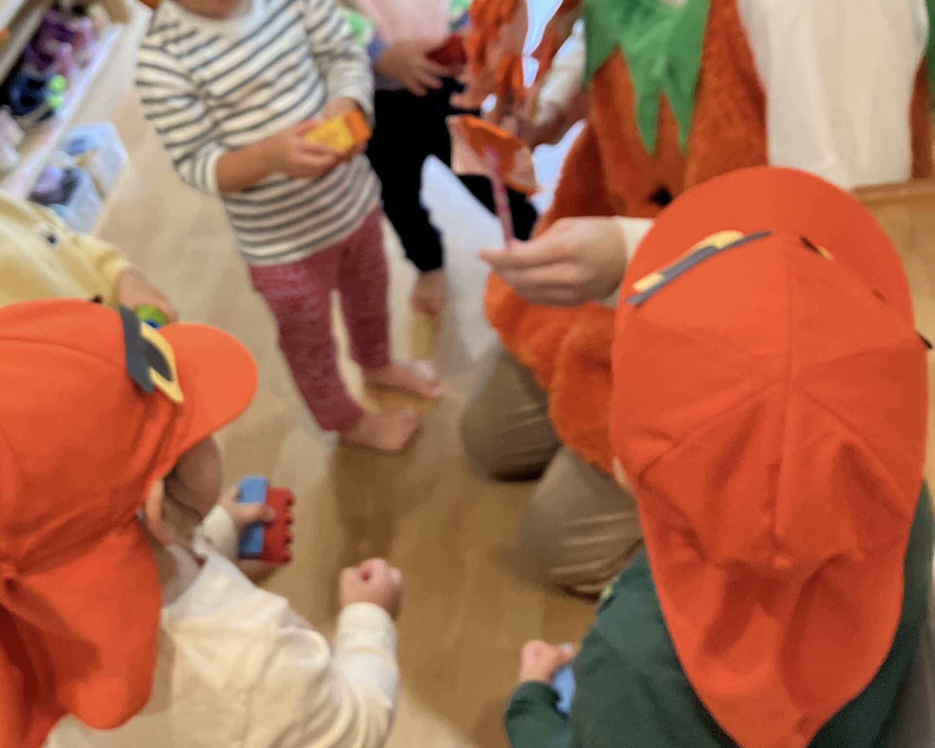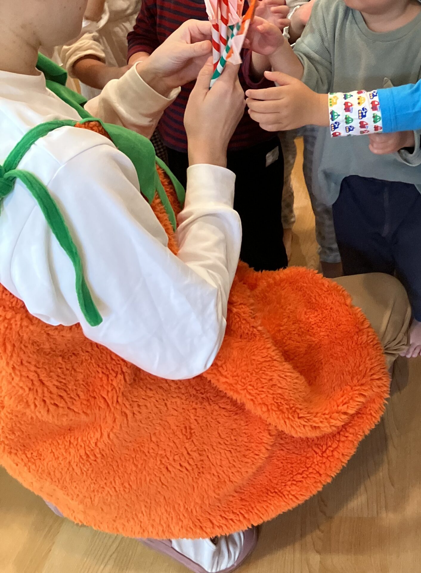 2歳児は元気な声で「トリックオアトリート」と言って大盛り上がりでした。