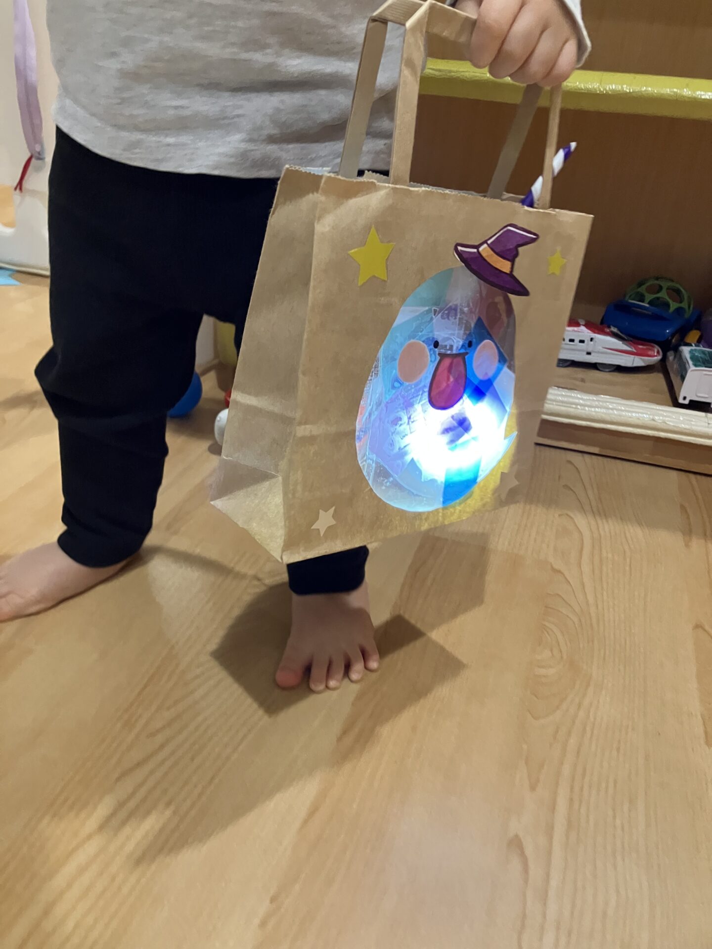 カバンの中にライトを入れるとおばけが光って見えますね!