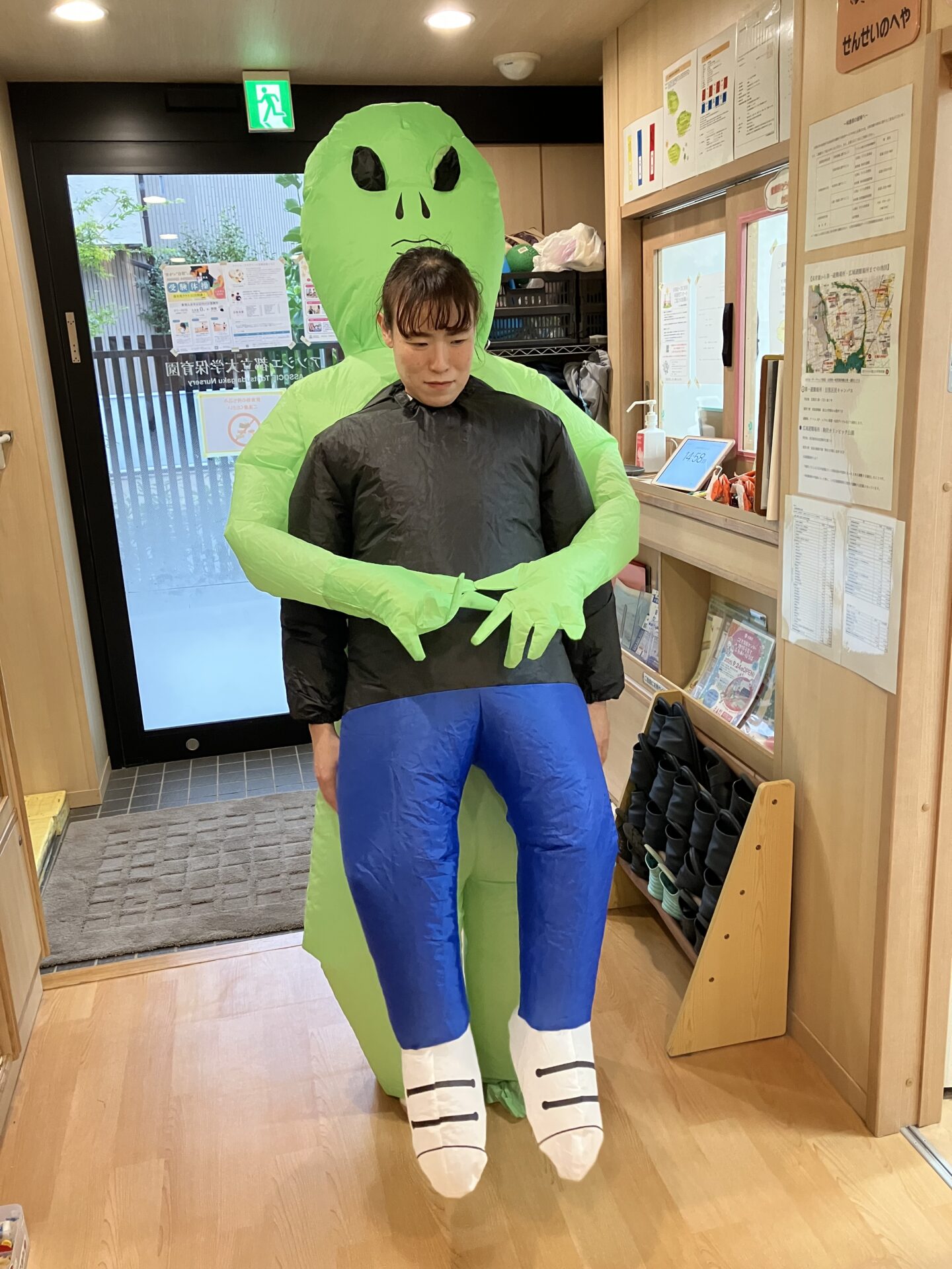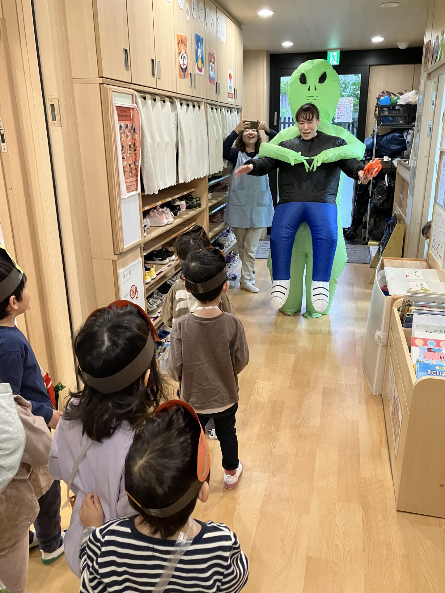 乳児の時はかぼちゃの仮装でしたが、幼児の時はエイリアンの仮装で登場!