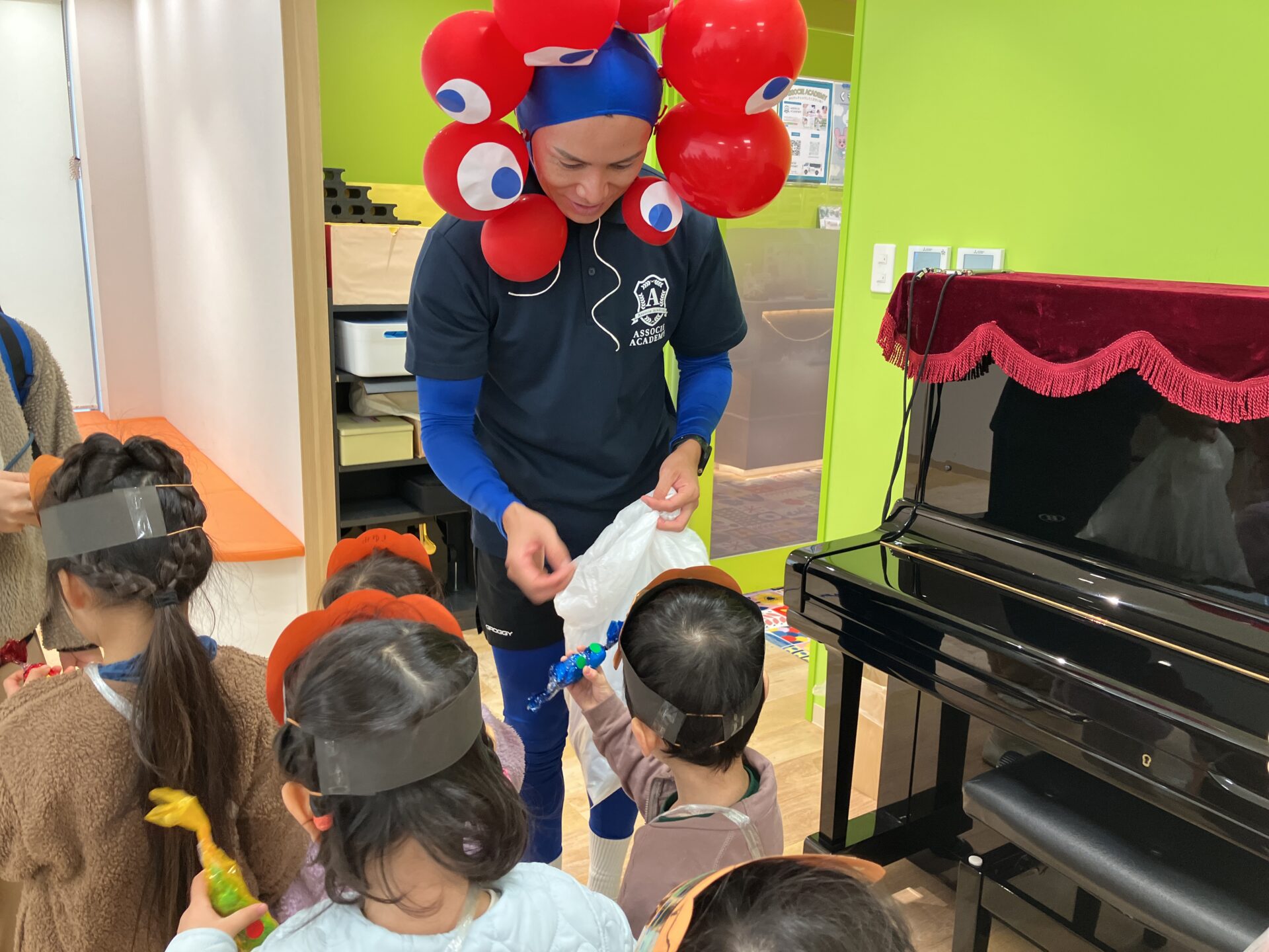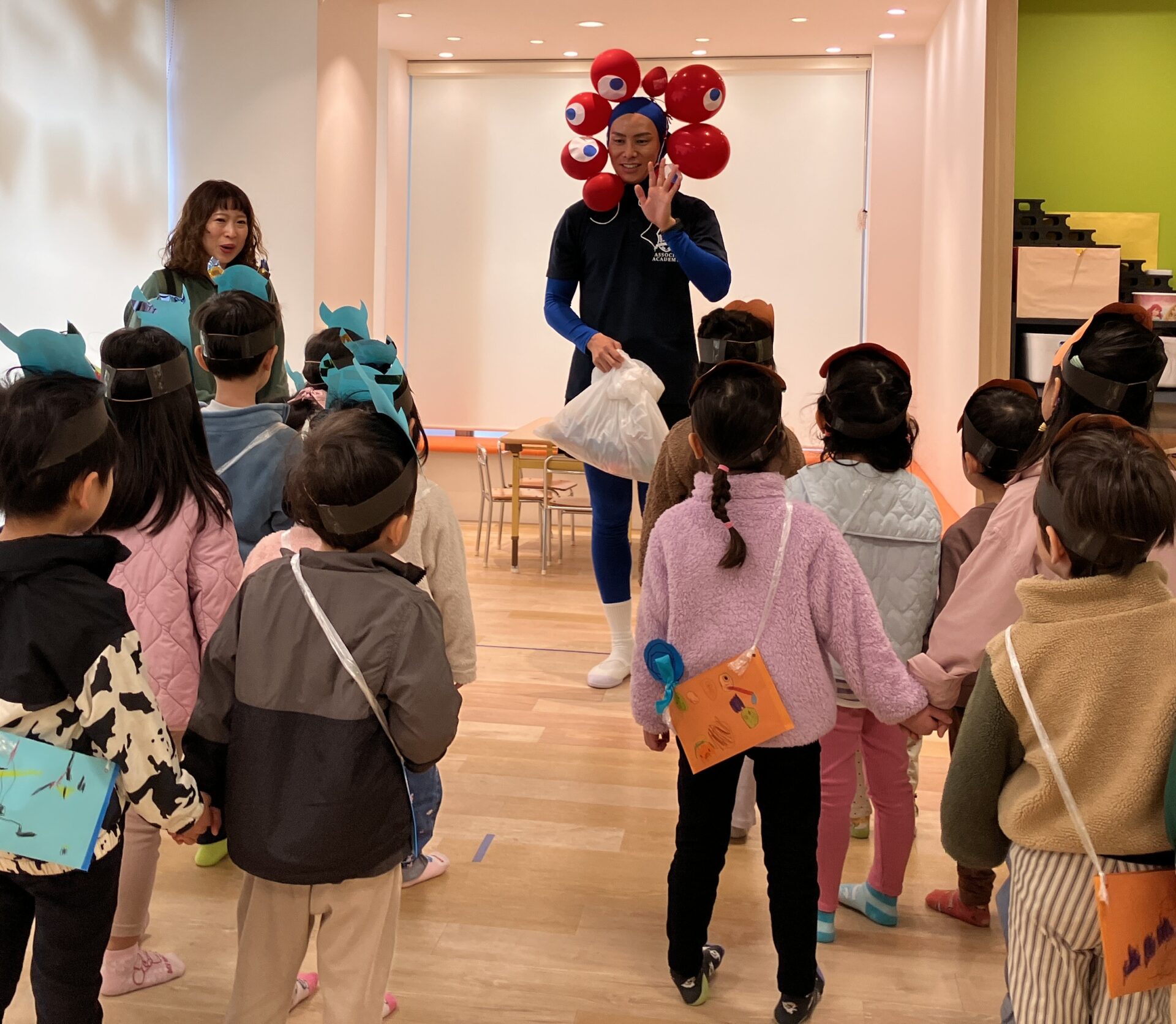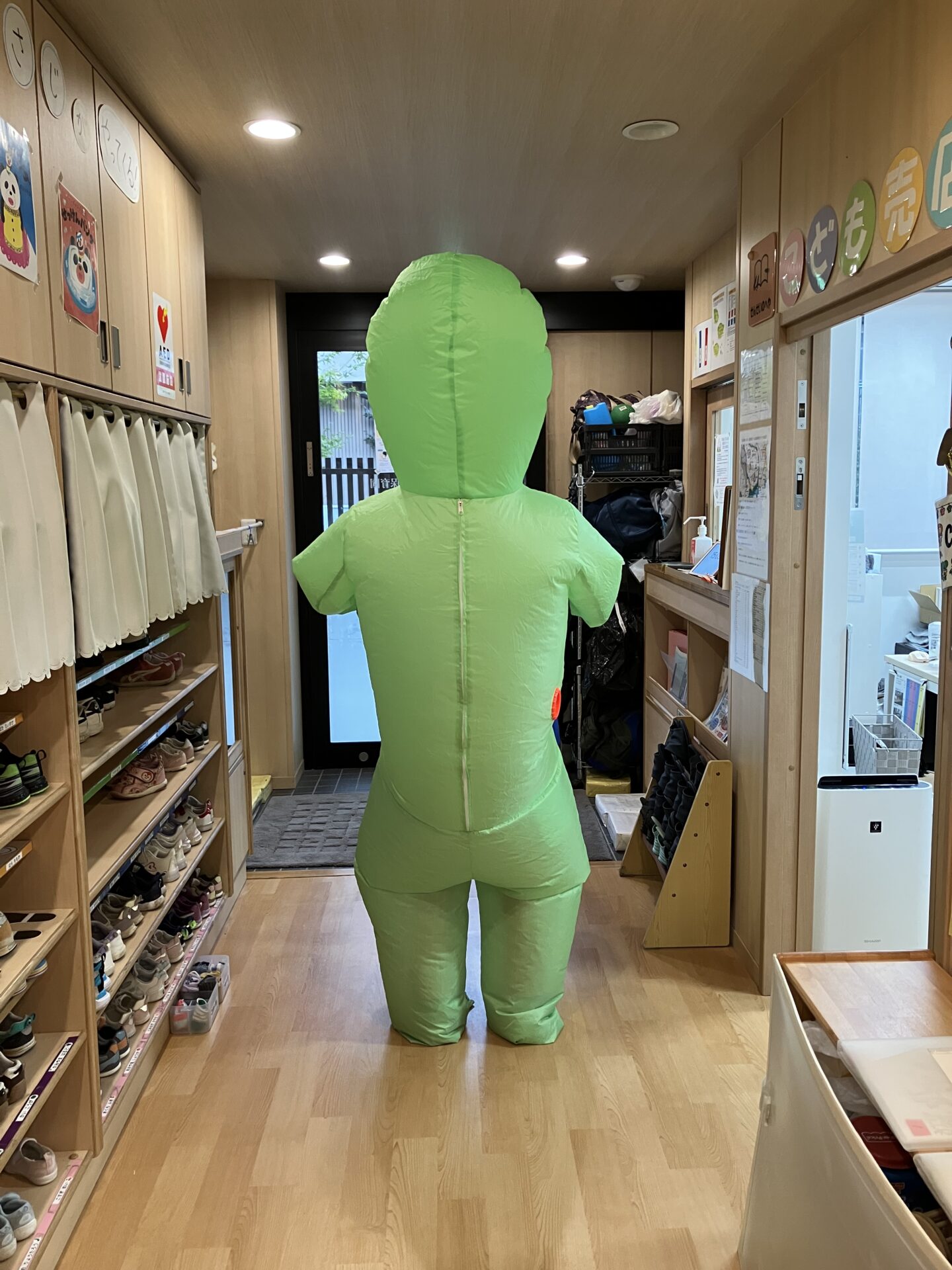 アソシエとりつだいベビーラボではミャクミャクの仮装をしたスタッフが待っていました。