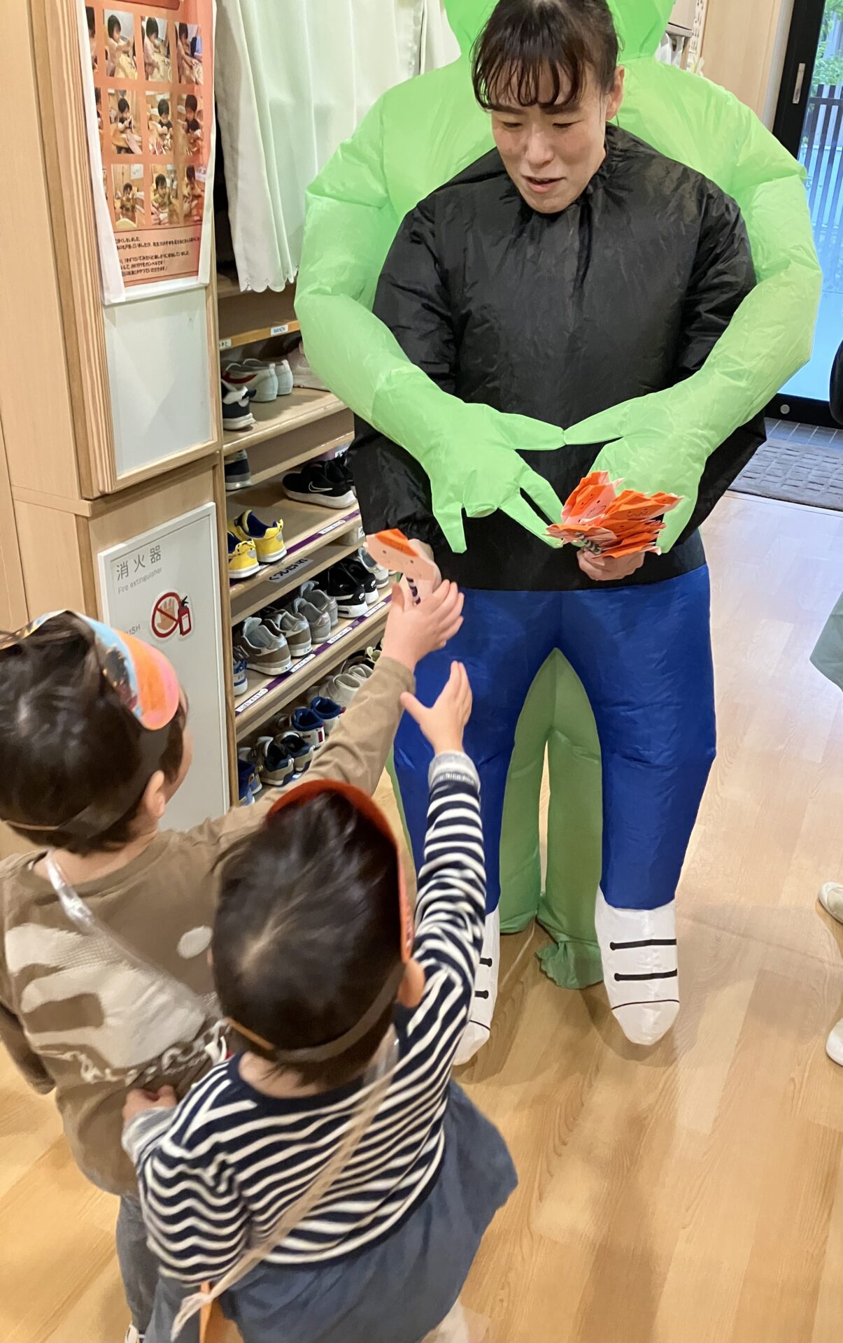 保育園では園長先生からおばけの折り紙のプレゼント☆
