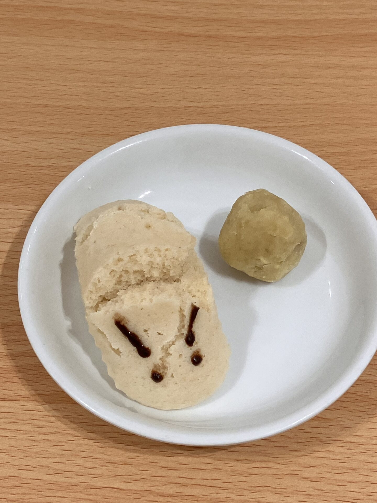 この日のおやつにはうさぎの形をしたおまんじゅうと一緒にさつまいも団子を食べました。