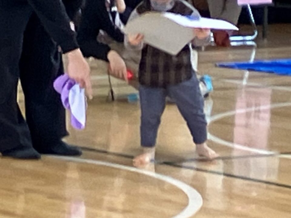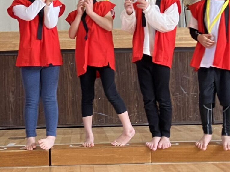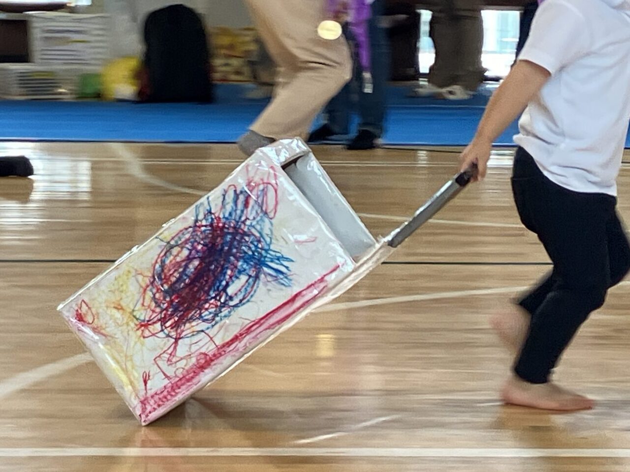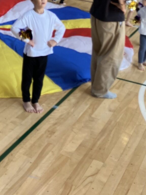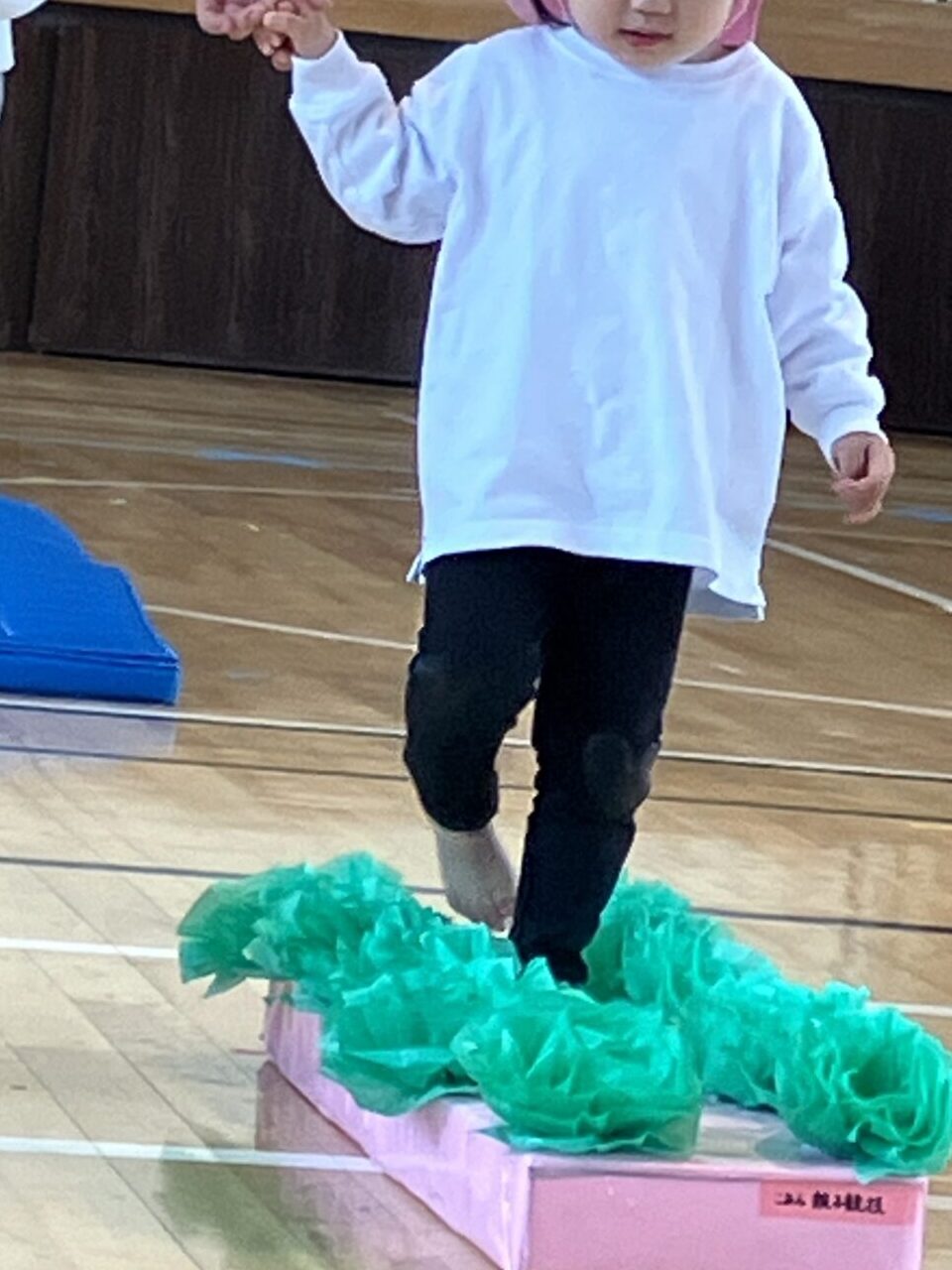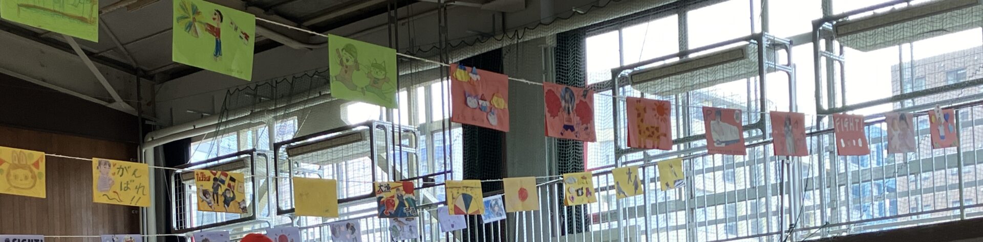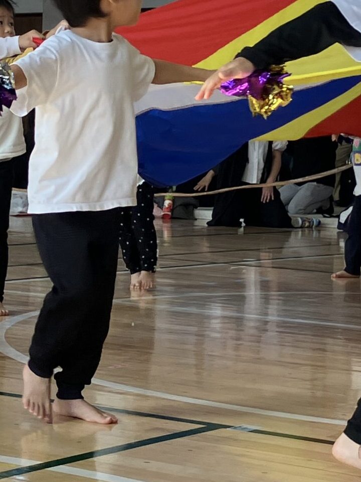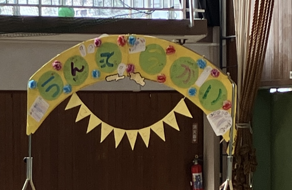 今月、小学校の体育館を借りて運動会を実施しました。